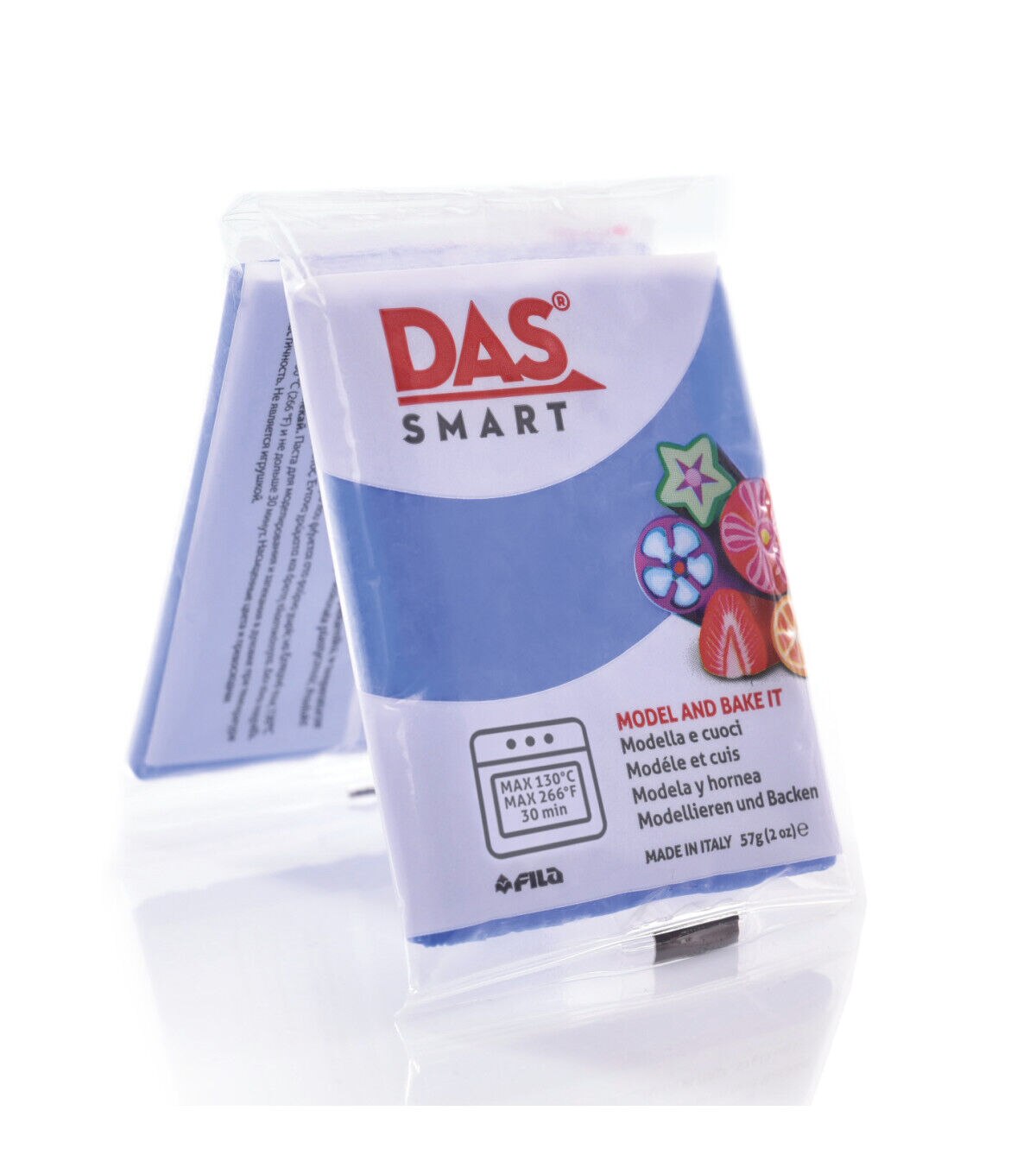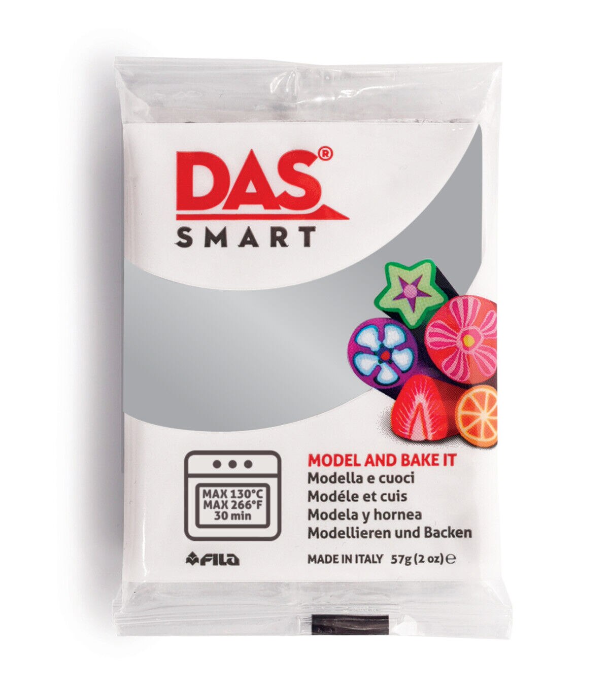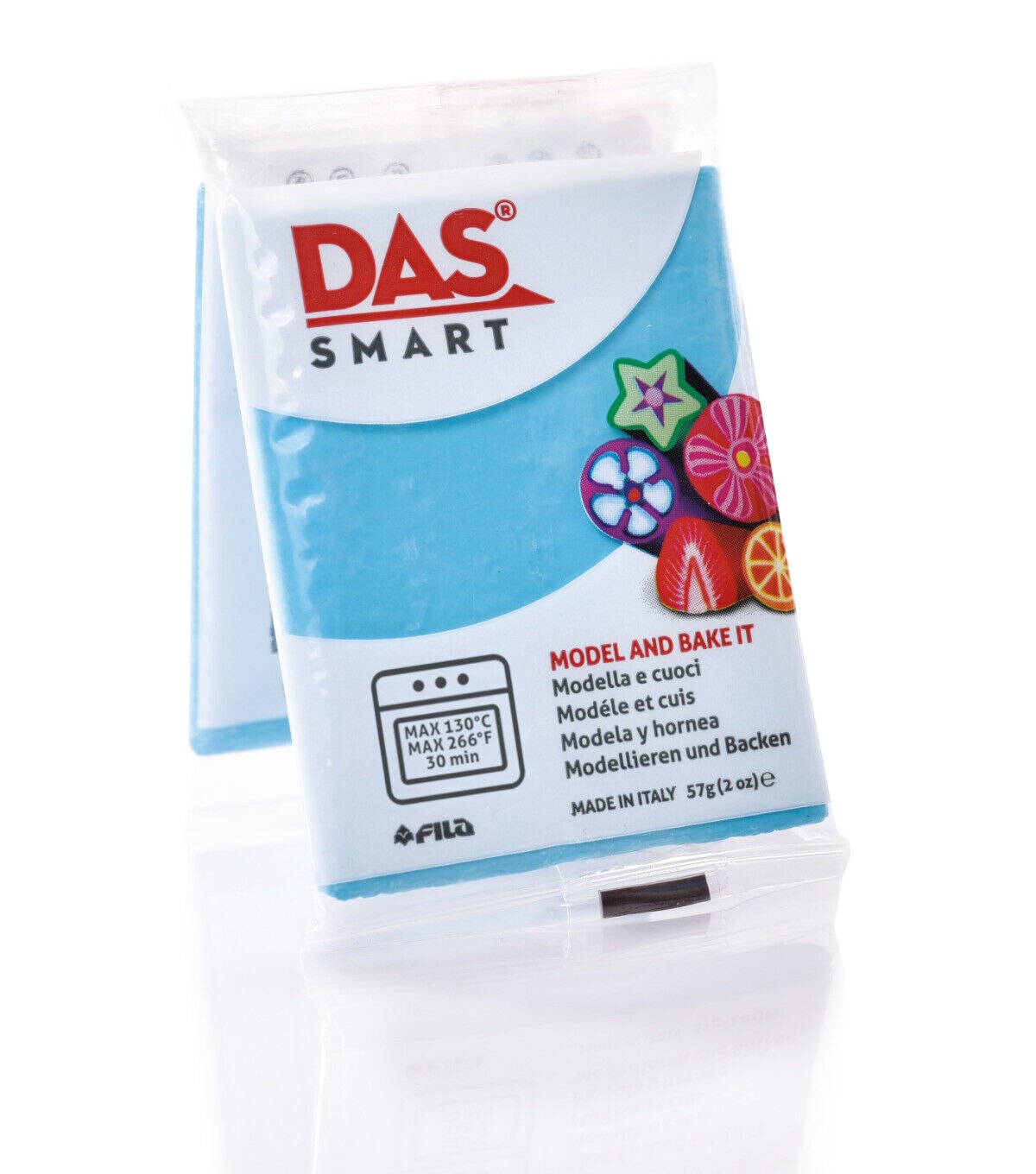 Das Smart is a new polymer, oven-hardening clay. Due to its excellent plasticity, it remains unvaried and compact before and after baking. All colors can be molded and combined. Das Smart is easy to bake in a standard kitchen oven at 130 degrees F for up to 30 minutes. Objects can be cooked several times to add new details and layers. Made in Italy, it is gluten-free and contains no animal-derived ingredients.