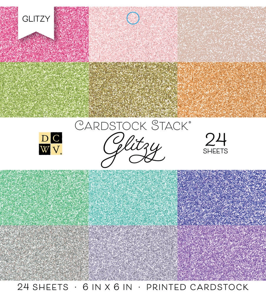 Explore your creativity with the DCWV 6" x 6" Cardstock Stack-Glitzy. This pack contains twenty-four, 6 x 6-inch sheets of glitter cardstock, that's great for card makers, mixed media artists, book binders and scrapbookers. The sheets work wonderfully with scissors, paper punches, scoring and distressing tools.