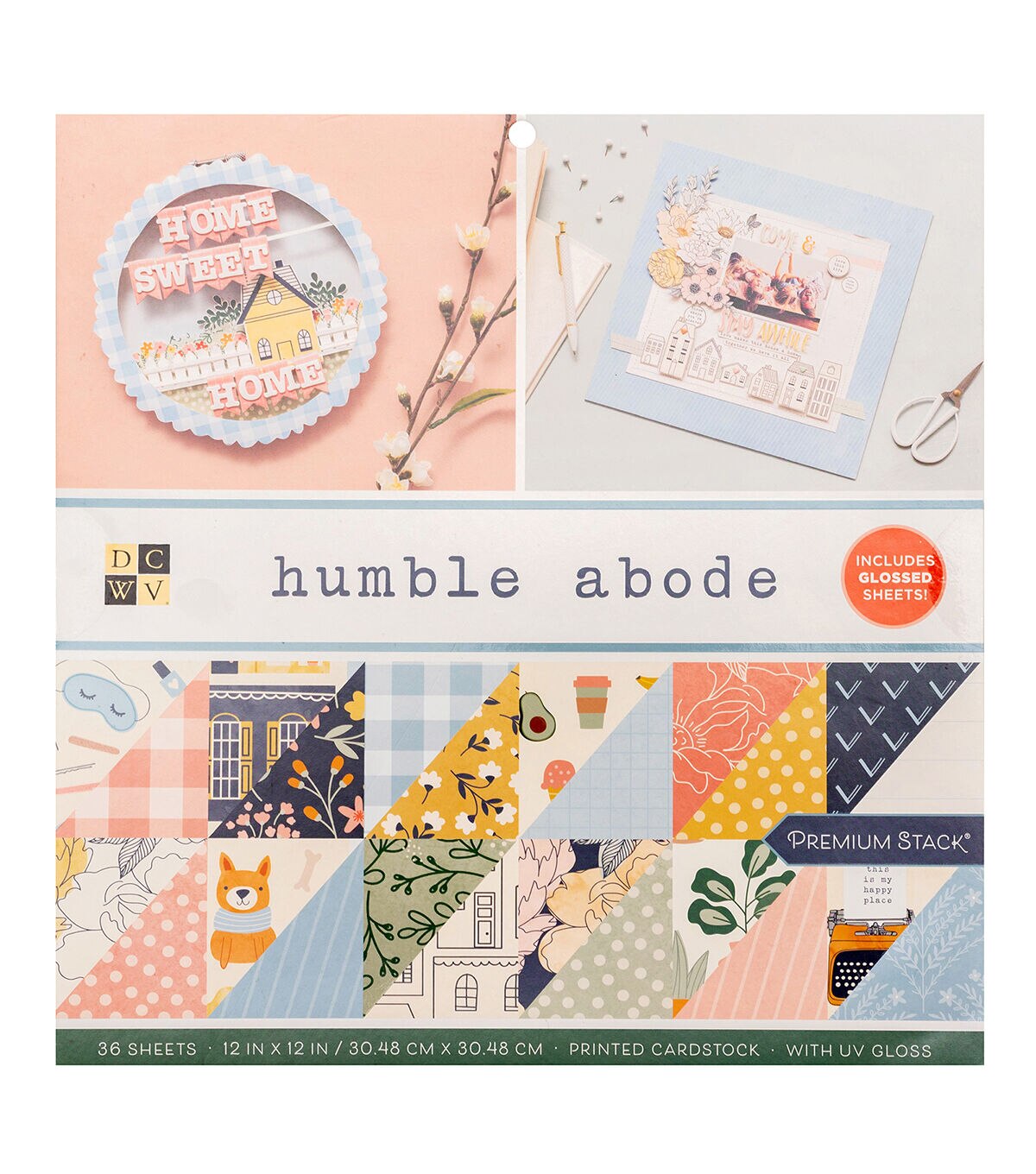 DCWV Stacks have something for everyone and every style! Stacks come in a variety of color combinations and designs to fit the look of your projects. The Humble Abode stack features a playful rainbow palette that complements adorable homey patterns. This stack includes 36 sheets of 12x12-inch paper, double-sided, with UV gloss accents.