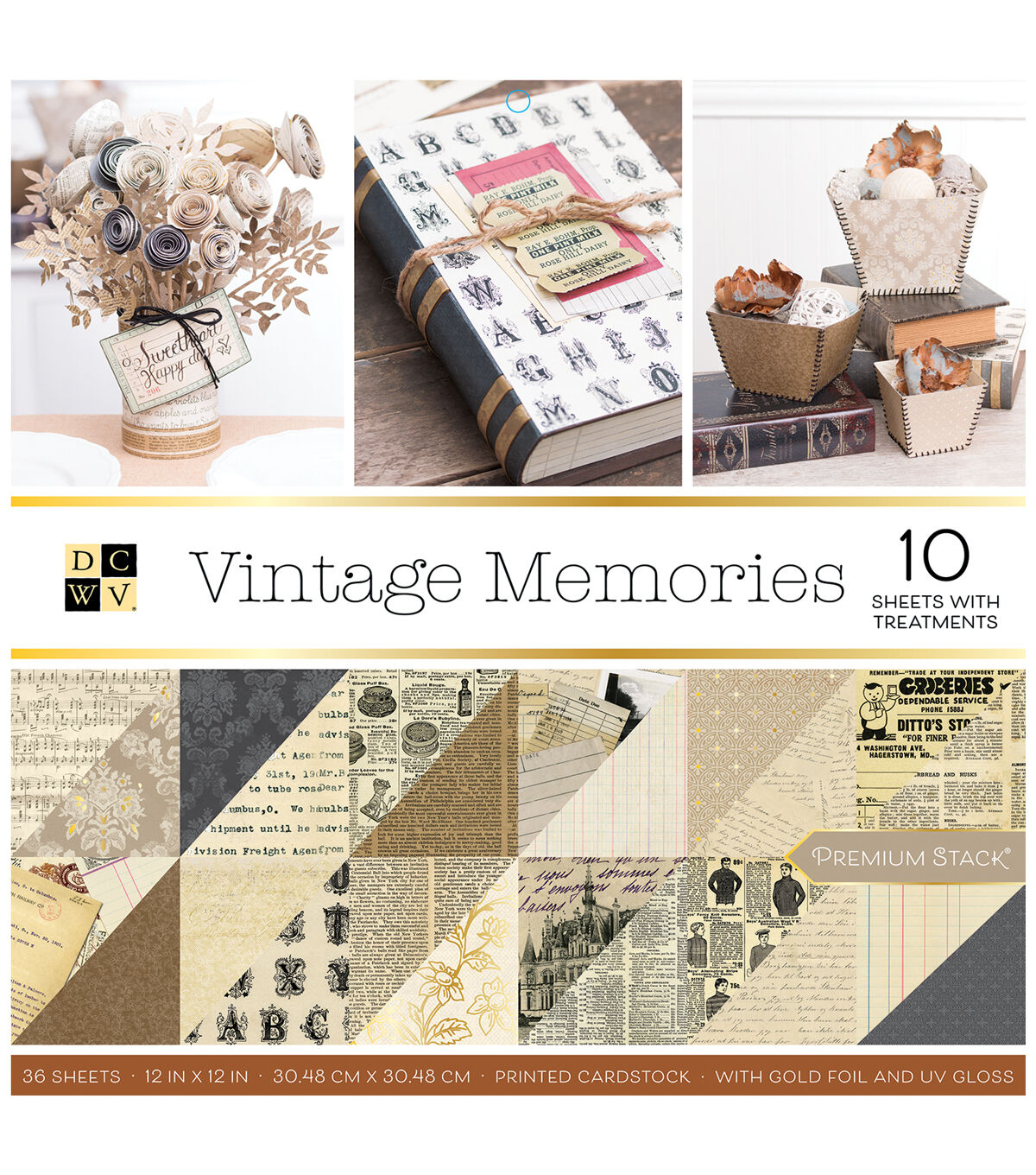 The DCWV Vintage Memories Cardstock Stack consists of premium, high-quality, heavyweight and acid-free sheets. There are 36 double-sided sheets, including 10 with treatments. These are perfect for home decor, scrapbooking, card making and handmade gifts. The sheets feature vintage colors and patterns.