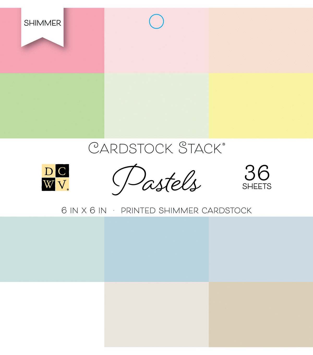 Make your creative projects sparkle, by accenting them using the DCWV 6” x 6” Shimmer Cardstock Stack-Pastels. These acid-free, shimmer cardstock sheets come in a pack of 36, which includes three sheets of each color. You can use them to make handmade cards and tags, or run them through your die-cutting machine to make scrapbook page embellishments and journaling additions.