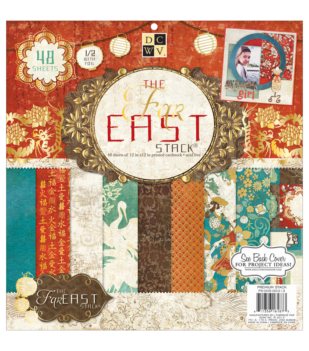 DCWV-Far East 2 Paper Stack. Create beautiful paper crafts with this paper stack. This package contains forty- eight sheets of 12x12 inch paper (two each of twenty-four designs, twelve with foil). Acid free. Imported.