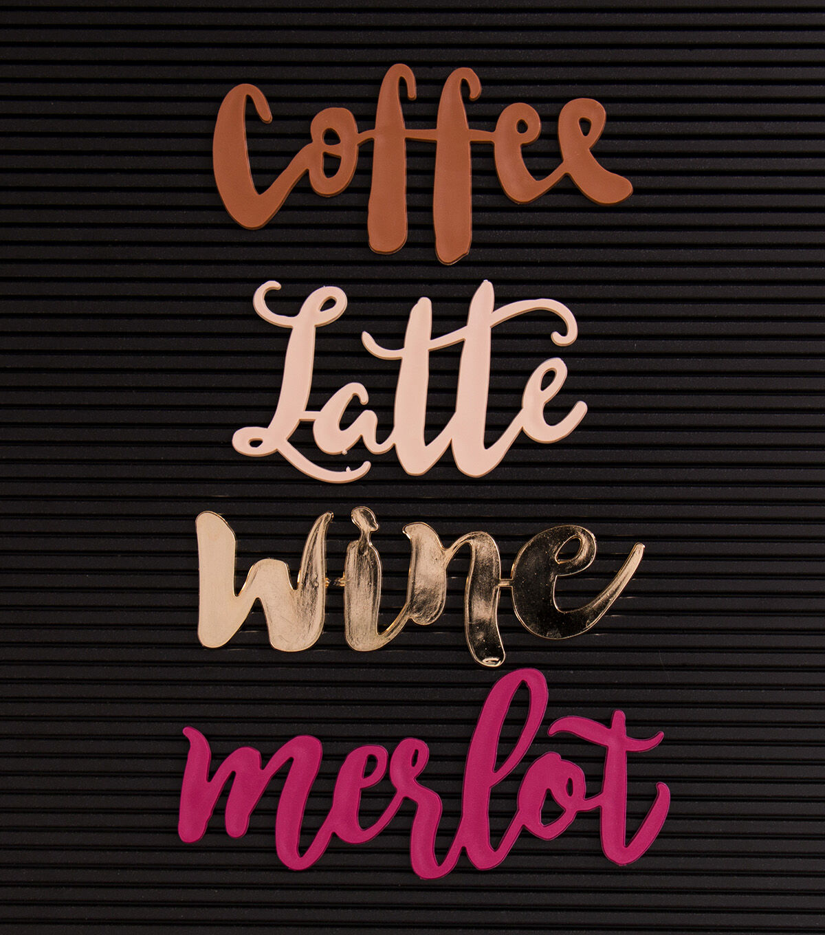 Spice up your Letter Board game in a fun way with this DCWV Home Letter Board Word Pack-Coffee & Wine. Easy to use, the word pack includes four beverage-themed plastic words for the Letter Board. Great for adding a punch of pizazz to your Letter Board message or gifting to others with similar Letter Boards, they are available in 10 themes, each theme sold separately.