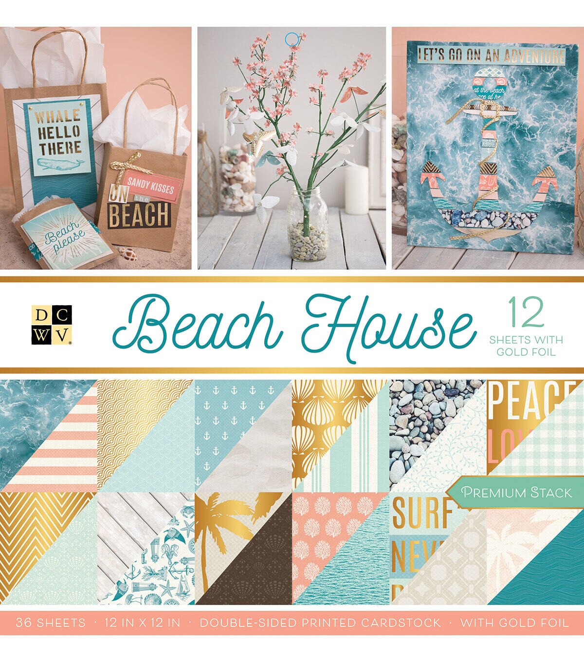 The pages in the DCWV 12"x12" Premium Printed Cardstock Stack-Beach House are great for creating projects for you and your family. You can use them with actual seashells, journaling card mobiles and planner dashboard pages and pockets to create shadow boxes with very little effort. This pack of 36 double-sided cardstock sheets is perfect for those lucky enough to visit the beach often, or those that dream about it just as much. Some of the pages have gold foil accents for added appeal.