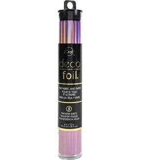 Thermoweb-Deco Foil. Create dimensional Deco Foil art on fabric, paper, wood and other porous surfaces. This package contains five 6x12 inch Deco Foil sheets. Comes in a variety of colors. Each sold separately. Acid-free. Made in USA.