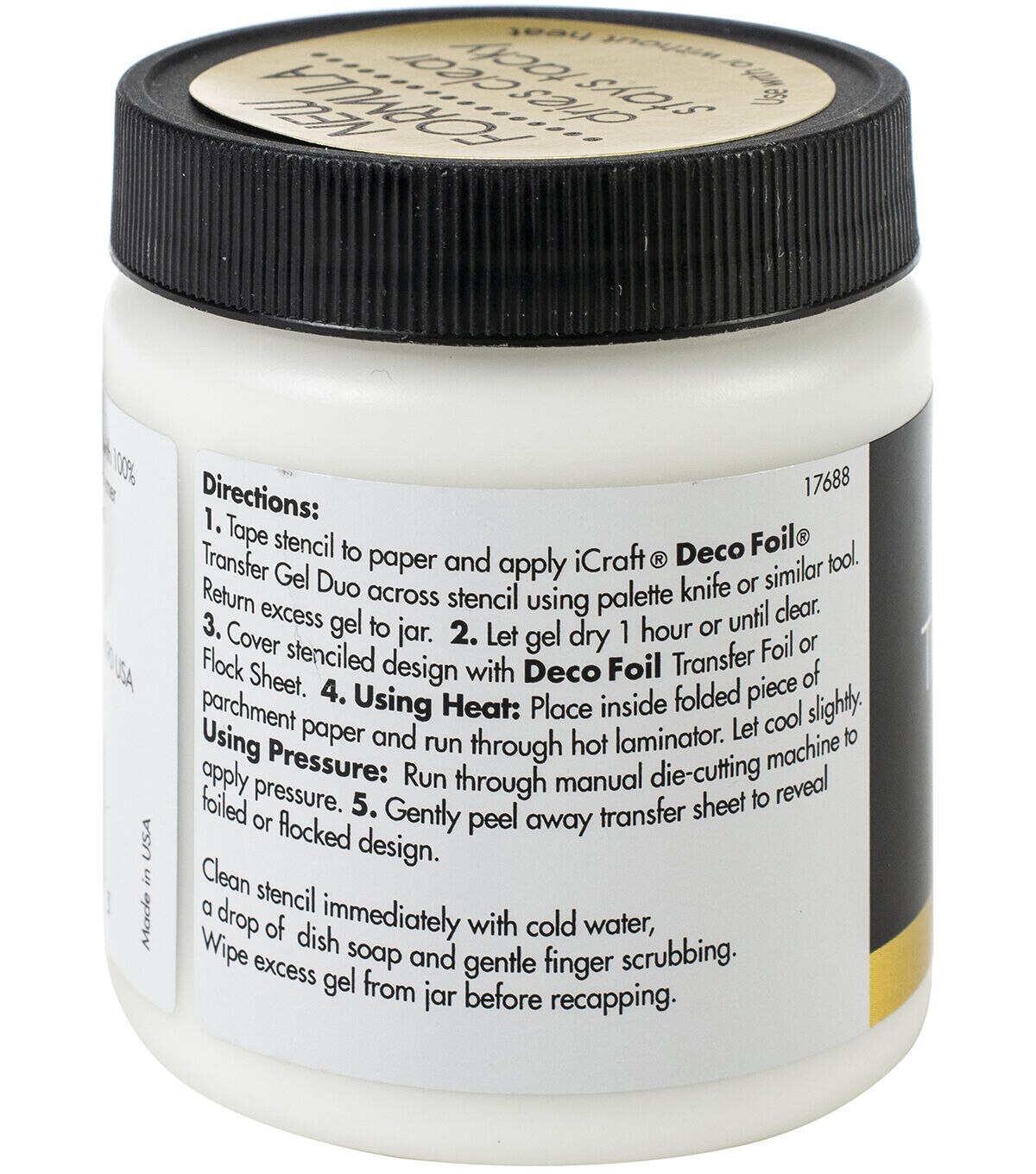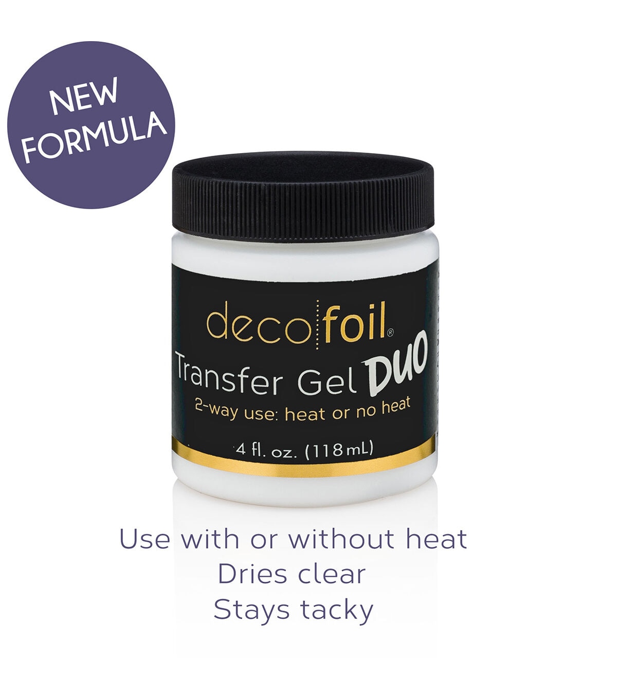 Deco Foil has reformulated the transfer gel to work with or without heat. You can transfer using heat or pressure from a die-cutting machine. Permanent transfer medium that dries clear and remains tacky for easy use. This package contains 4oz of transfer gel. Conforms to ASTM D 4236. Made in USA.