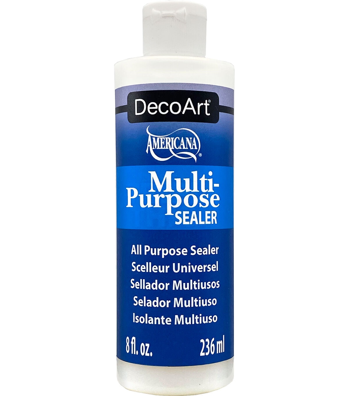 DecoArt Americana Multi Purpose Sealer. It seals raw wood and improves acrylic paint adhesion on slick surfaces. It can also be mixed 1:1 with paint for a basecoat. Conforms to ASTM D 4236. Made in USA.