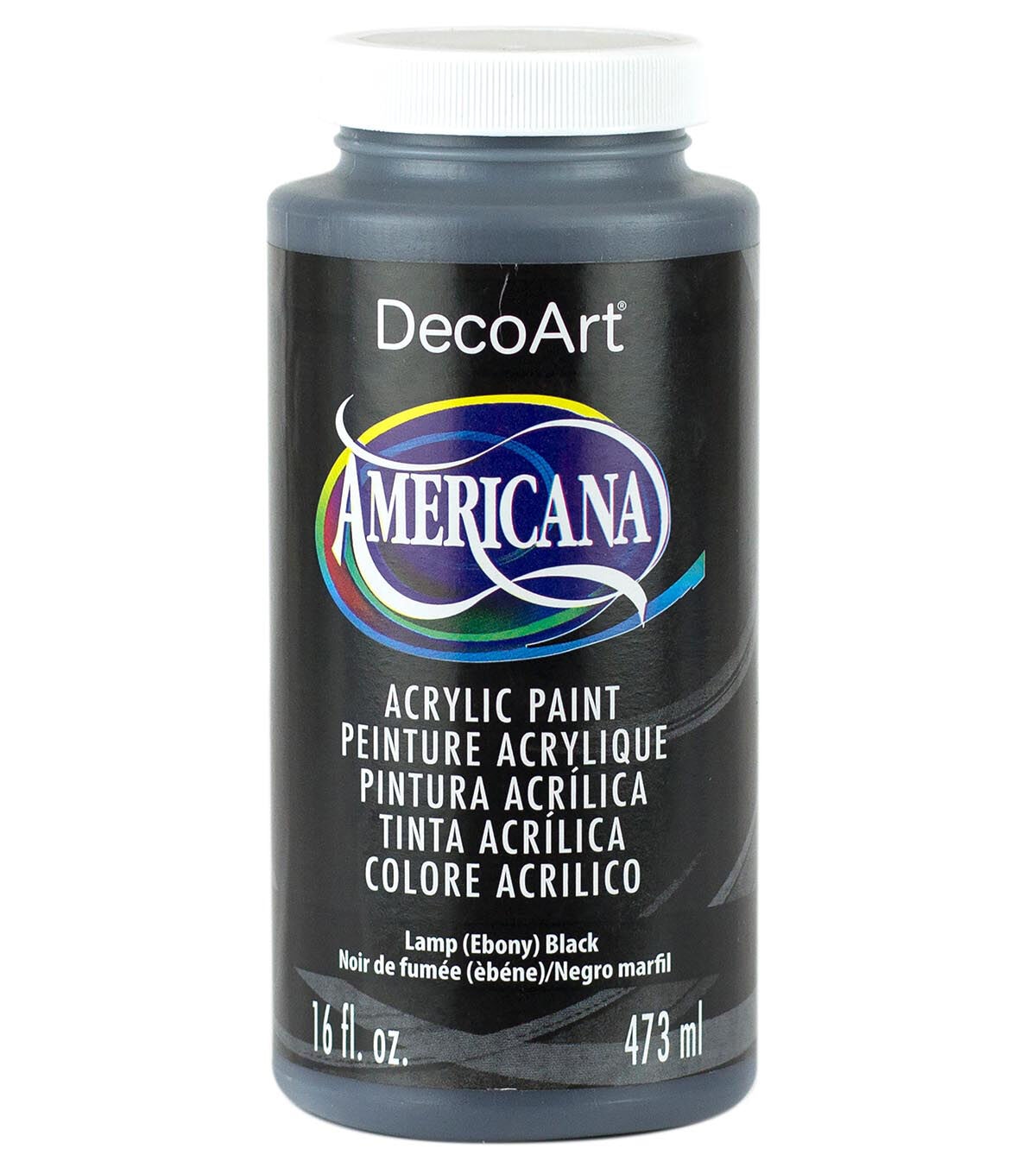 The 16-fluid ounce size of the DecoArt Americana Acrylic Paint-Lamp Black is ideal for the paint pouring trend. It features bright, lightfast pigment. This non-toxic and water-based acrylic paint delivers a premium matte finish, and ensures quick and easy clean up.