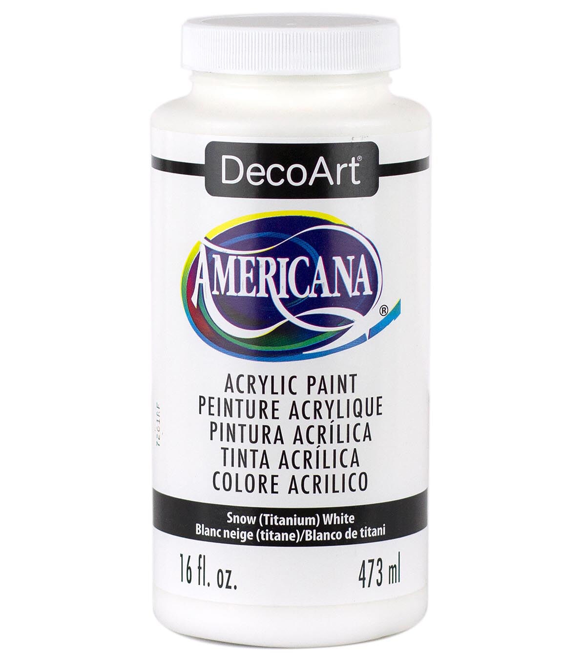 The 16-fluid ounce size of the DecoArt Americana Acrylic Paint-Snow White is ideal for the paint pouring trend. It features bright, lightfast pigment. This non-toxic and water-based acrylic paint delivers a premium matte finish, and ensures quick and easy clean up.