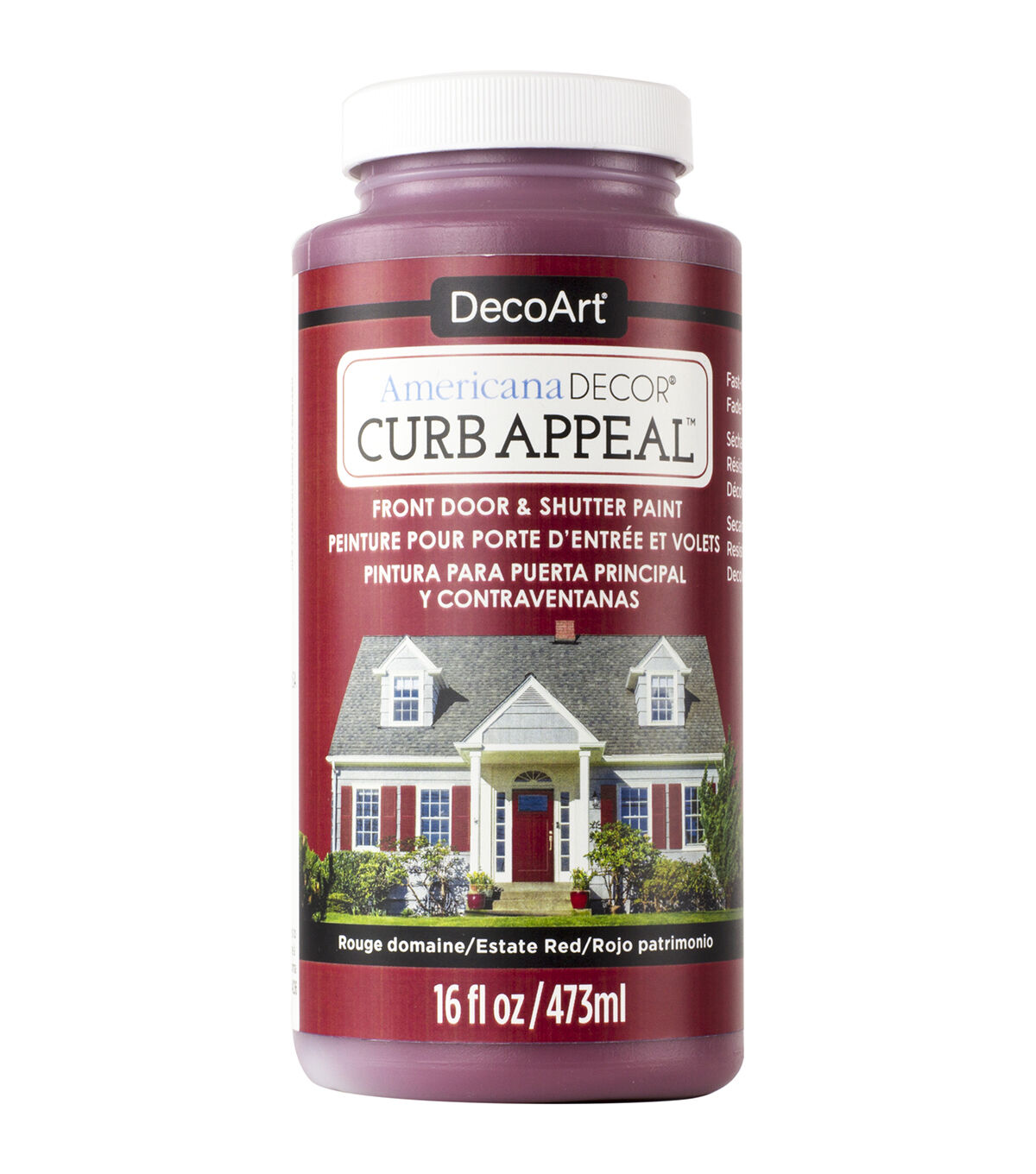 Enliven your home's front door, shutters, railings and mailboxes with the DecoArt Americana Decor Curb Appeal Paint. The paint offers excellent adhesion to wood, metal, and many more surfaces. It has a semi-gloss finish that is scuff, fade and water-resistant, making it ideal for outdoor use. Use this fast-drying, durable outdoor paint to lend your outdoor surfaces that perfect, finished look.
