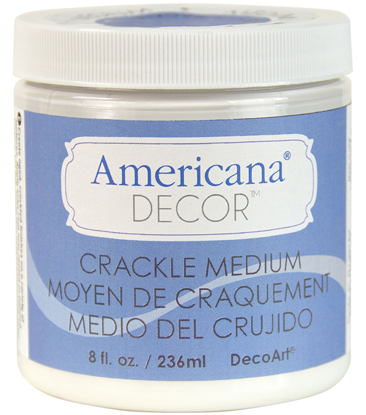 Create aged, crackled finishes on a variety of surfaces with the DecoArt Americana Decor Crackle Medium-Clear. This crackle dries clear and leaves a lovely texture on any home decor surface. You can also apply a thin or thick layer over any paint to add some depth and character to your art and craft projects. This pack contains one 8 ounce jar of crackle medium, and conforms to the ASTM D 4236 standards.