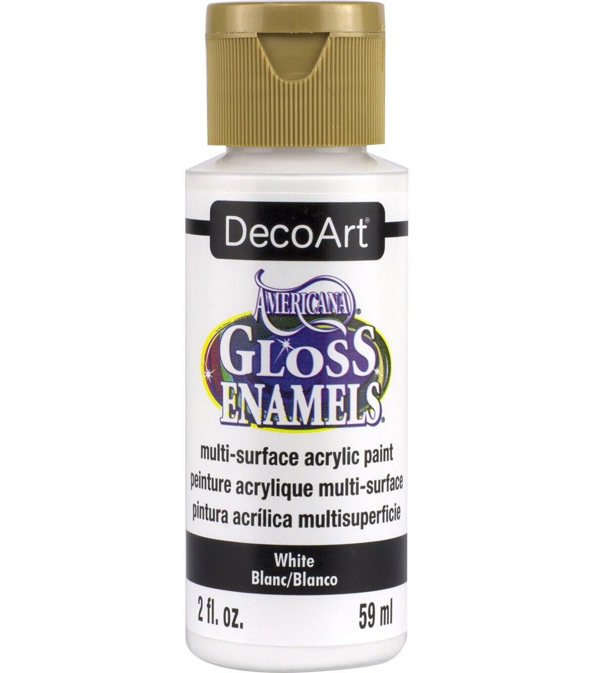Use this DecoArt Americana Gloss Enamel Acrylic Paint to decorate your fund jars, planters, tiles, bowls or other non-porus surfaces. You can also use it to embellish home decor pieces by spraying over a wine bottle or ceramic figurines with this glossy paint. This acrylic paint works on multiple surfaces, including wood, paper mache and glass.