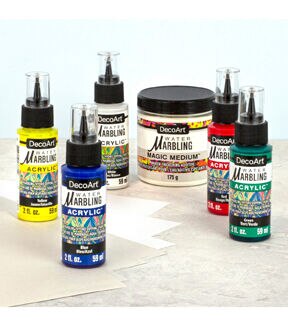 - The Primary Colors Water Marbling Set contains 5 acrylic paints that are perfect for creating a variety of patterns and designs. Water marbling is the ancient art form of floating paint on the surface of water to create mesmerizing patterns. By putting DecoArt Water Marbling Magic Medium in a basin of water you can then use our Water Marbling Acrylics to create delicate and unique designs directly on the water’s surface.