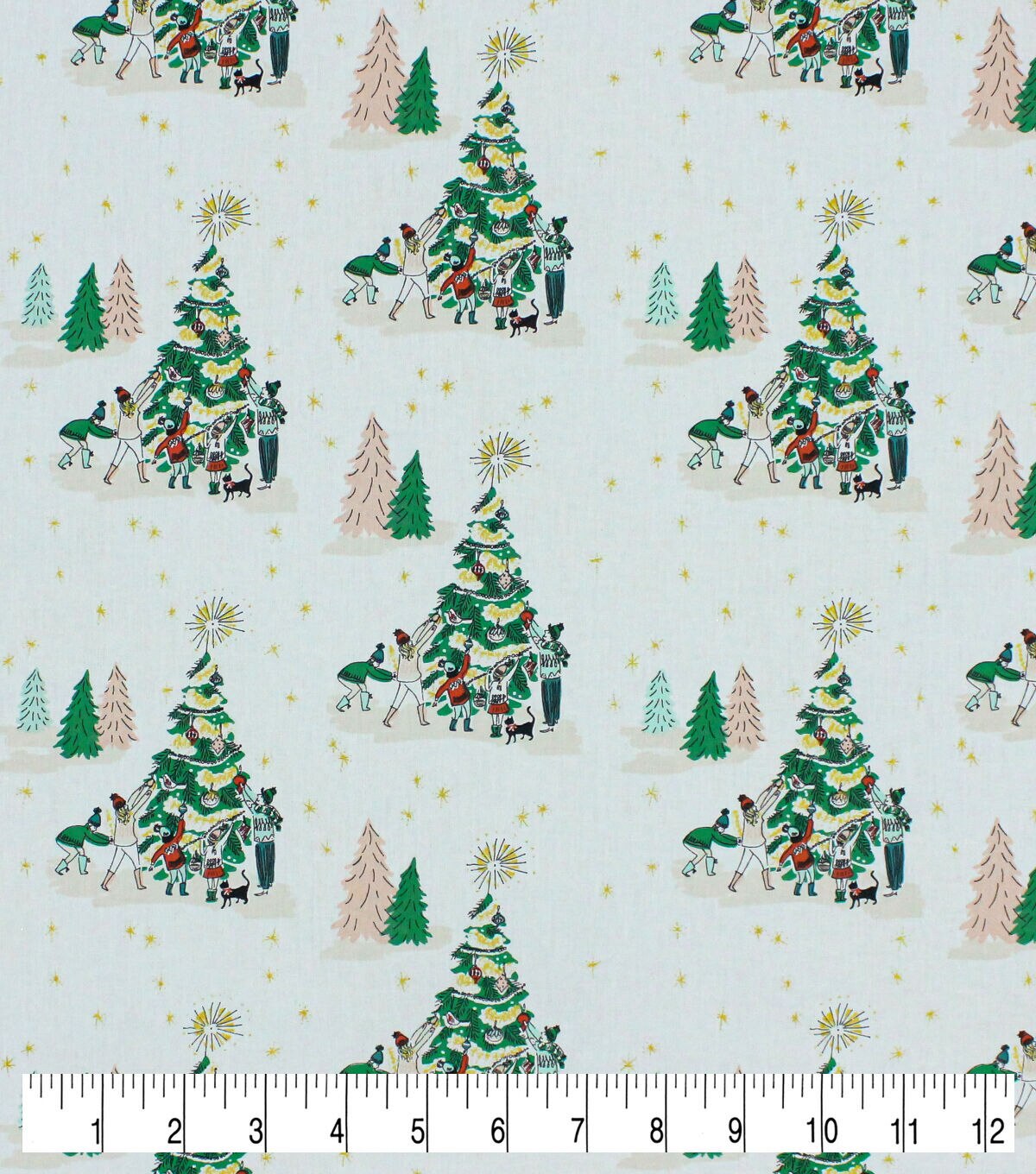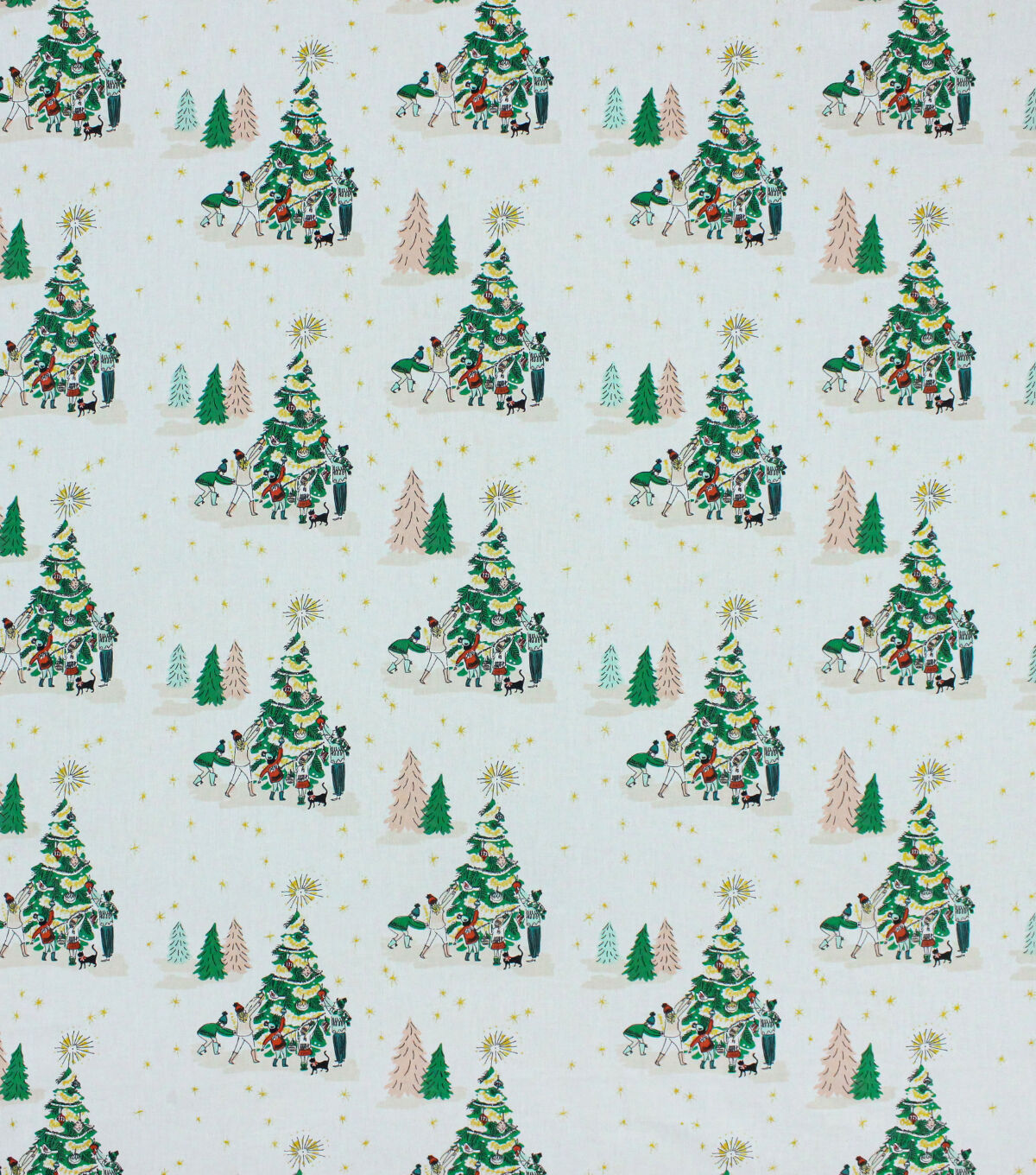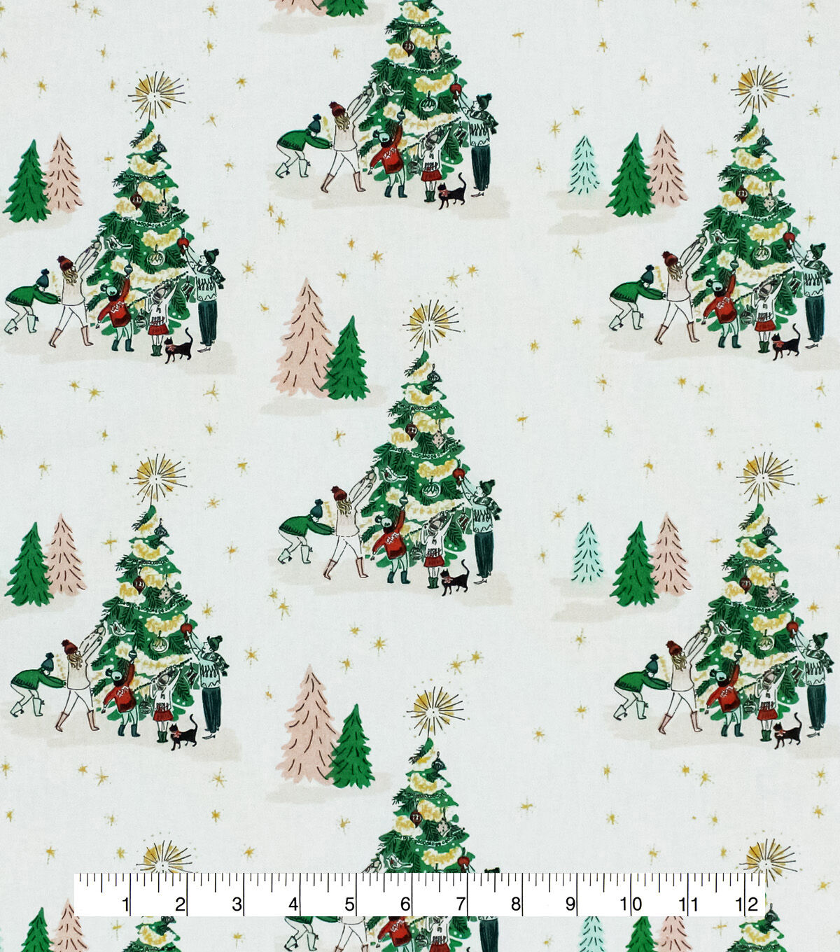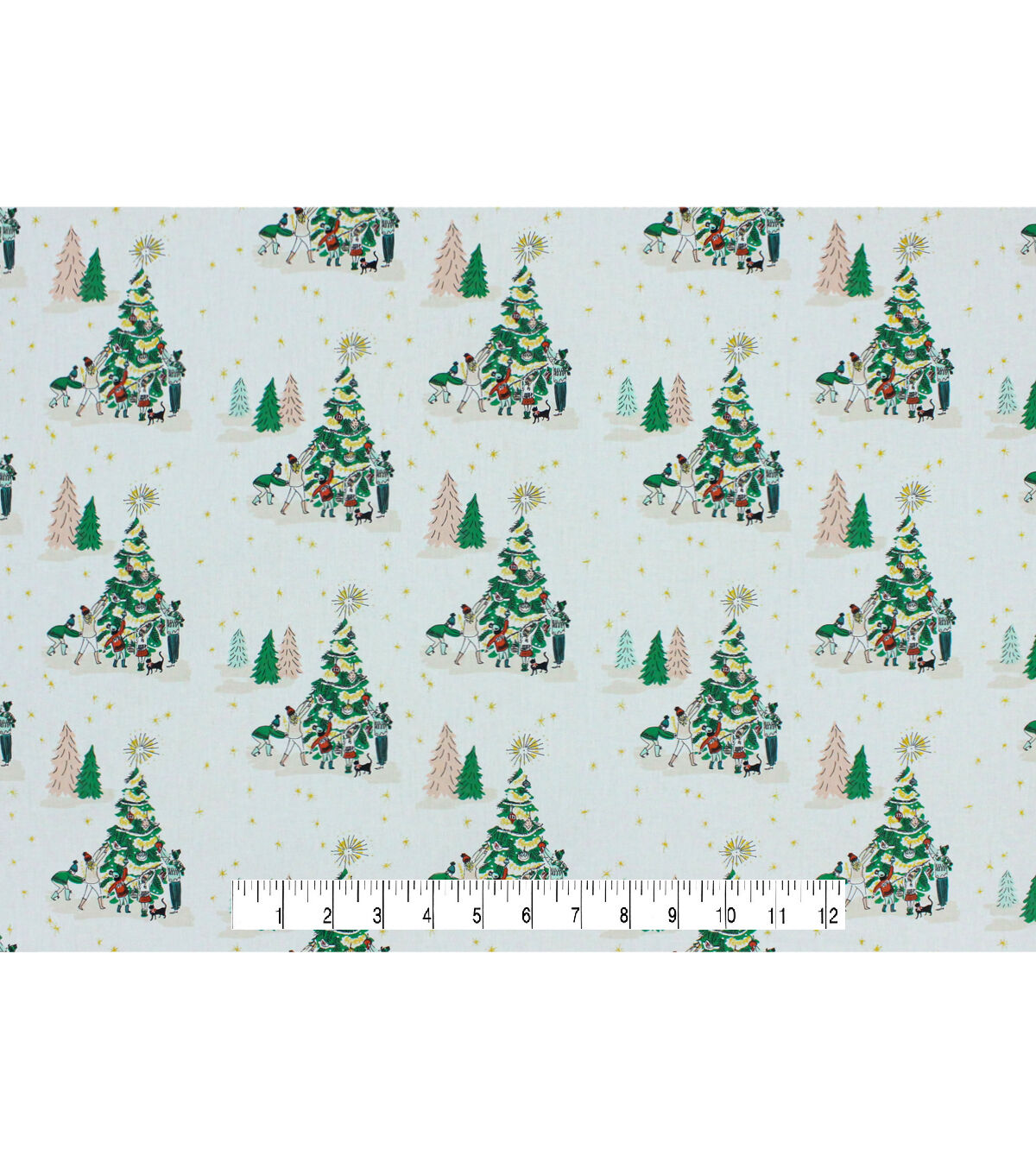 Get in the Holiday Spirit with Decorating the Trees on White Christmas Metallic Cotton Fabric