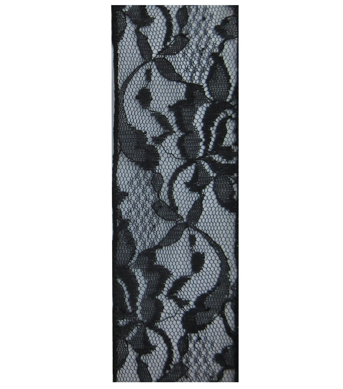 Embellish your decor projects with the gorgeous Decorative Ribbon Lace Ribbon-Black. This decorative ribbon displays elegance through an intricate black lace design that's sure to enliven any paper and craft project. Use it to adorn your containers, candles, baskets, albums and lots more. For added charm, embellish this 2.5-inch wide, 15-foot long lace ribbon with silver or gray rhinestones.