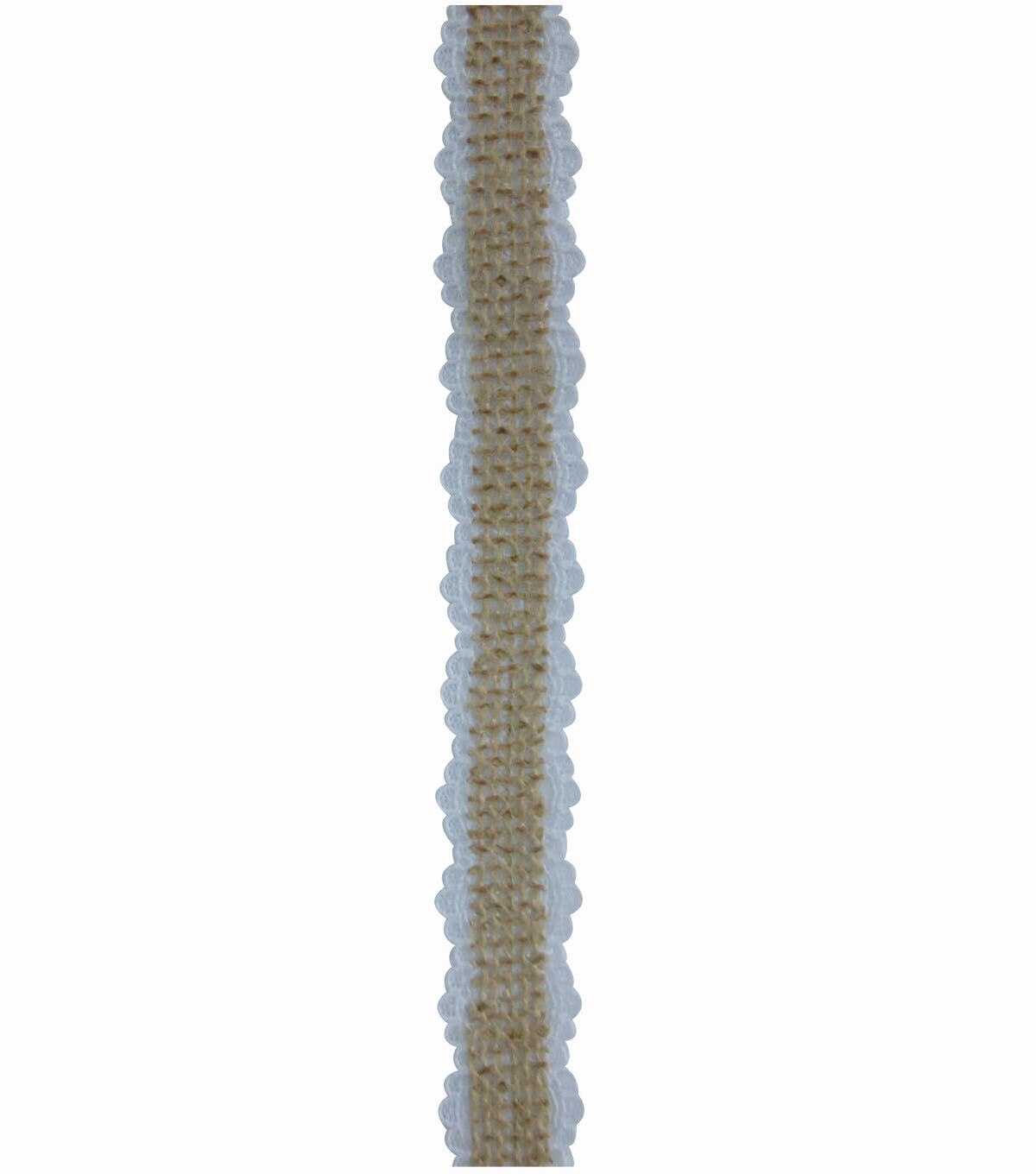 Make wreaths, garlands, bows and other decorative accents using the Decorative Ribbon Burlap on Lace-White. Wrap it around flower vases, or use it to embellish event decor and seasonal crafts for a textured look. This 0.75-inch wide, 15-foot long roll of decorative ribbon can be teamed with colorful beads for added visual flair.