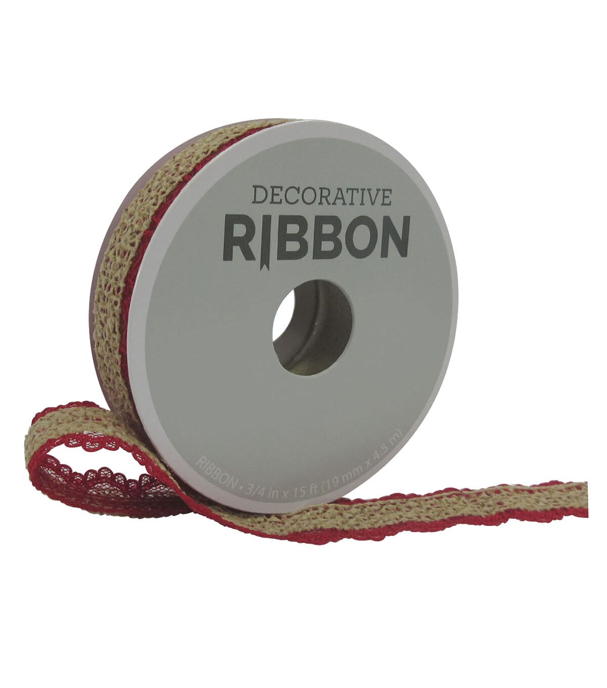 Prettify your home decor and craft projects with embellishments like the Decorative Ribbon Burlap on Lace-Red. Minimalist and elegant, this decorative ribbon flaunts a lovely fusion of red lace and burlap for visual charm. Use it to decorate anything from mason jars and containers to frames and more. You can mix and match with bright lace ribbons from our collection, sold separately, to create a contrasted look.