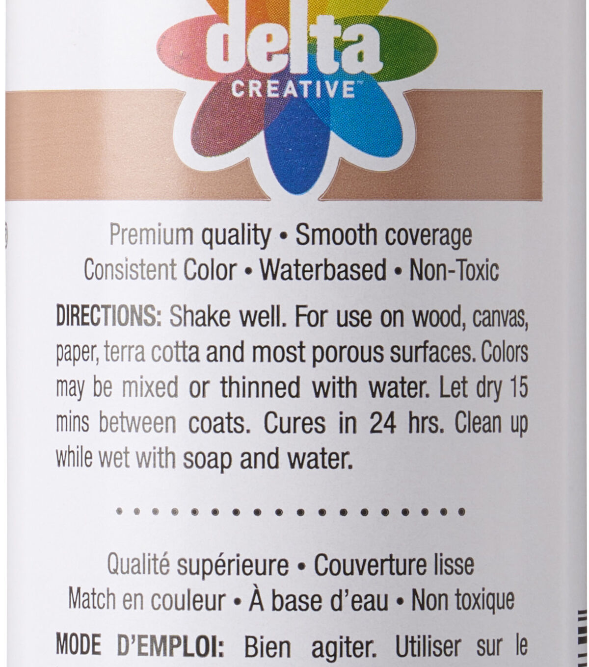 For over 40 years, Delta has inspired decorative painters, home décor enthusiasts, and creative crafters with high-quality products. Delta Ceramcoat Metallic Acrylic Paint offers a wide array of colors that gives your projects a fresh, modern look with excellent coverage. Delta Ceramcoat Acrylic Paint is an all-purpose, premium quality acrylic paint formulated specifically for all your arts and crafts projects. Its smooth formula goes on easily and provides a beautiful metallic finish with consistent color on all porous surfaces. Use on wood, terra cotta, plaster, paper mache, and more. This paint is great for basecoating, stenciling, and decorative painting. Each color is water-based and non-toxic, making cleanup easy. Add Delta Ceramcoat Metallic Acrylic Paint to your art supplies for the perfect addition to all your DIY projects!