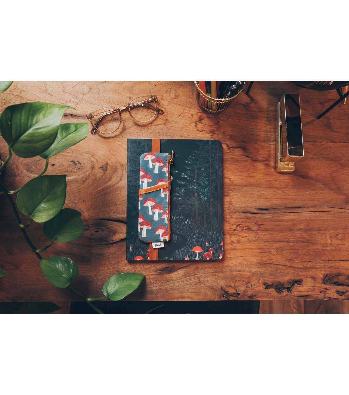 Denik 6" Navy Mushrooms Notebook Pouch - Keep Your Writing Essentials Safe and Stylish