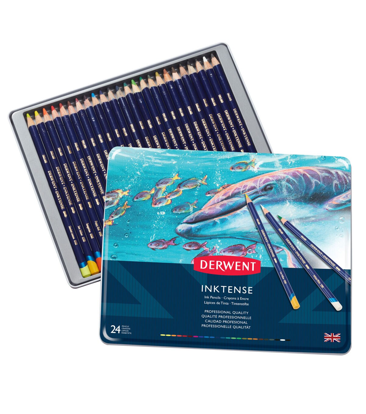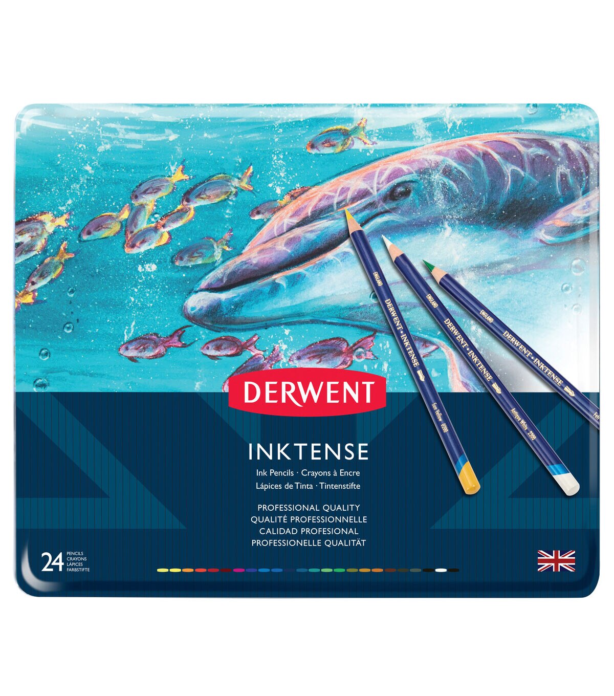 Combining the brilliant intensity of pen and ink with the versatility of line and wash, the Derwent Inktense Pencils can be used for dry rich intense color, or washed out with a little water to create a vivid translucent effect. The rich pigment extends further than traditional watercolor pencils, and is more opaque for true ink effect. Once dry it is permanent, allowing for artwork to be washed over with other media without bleeding.