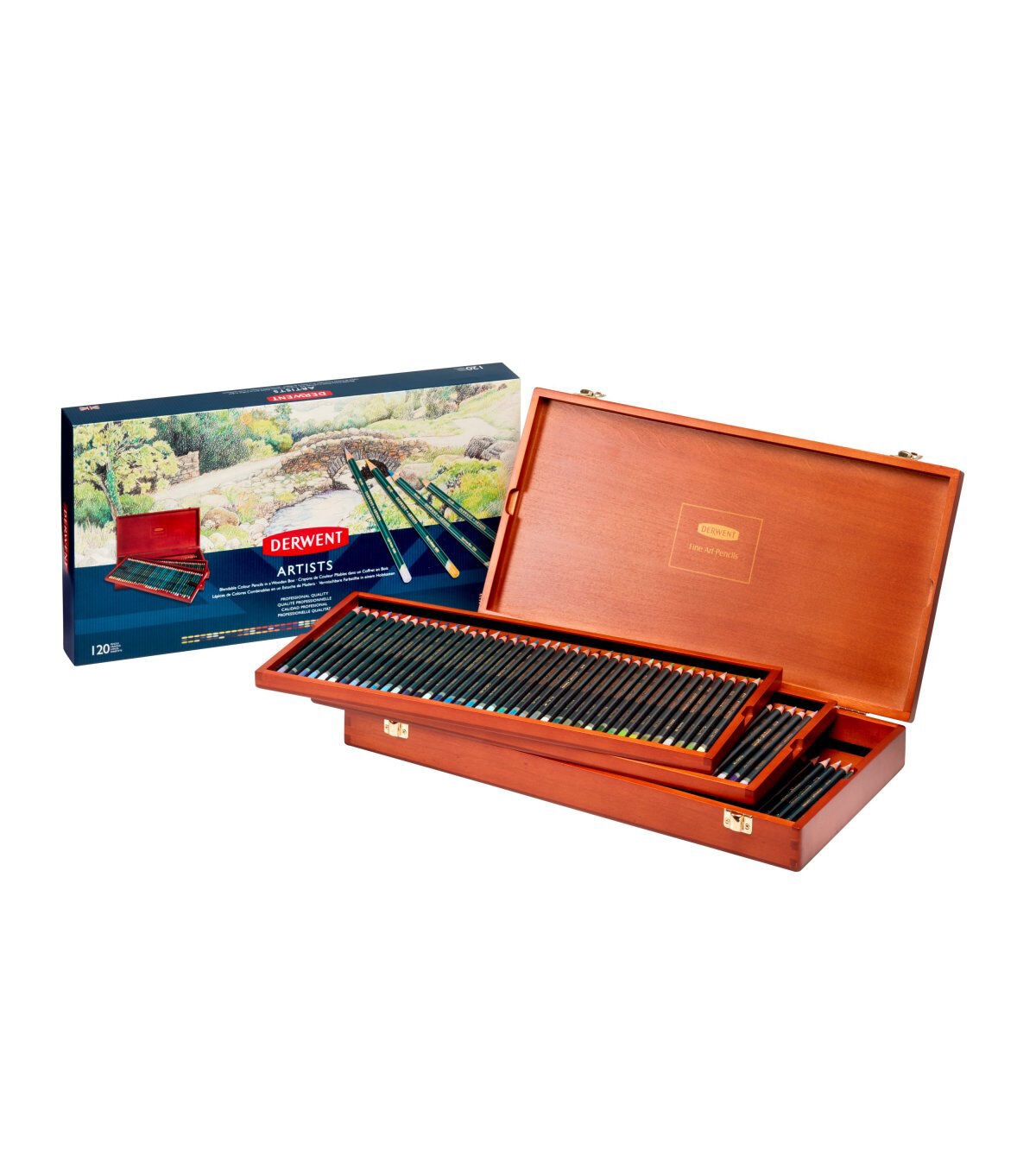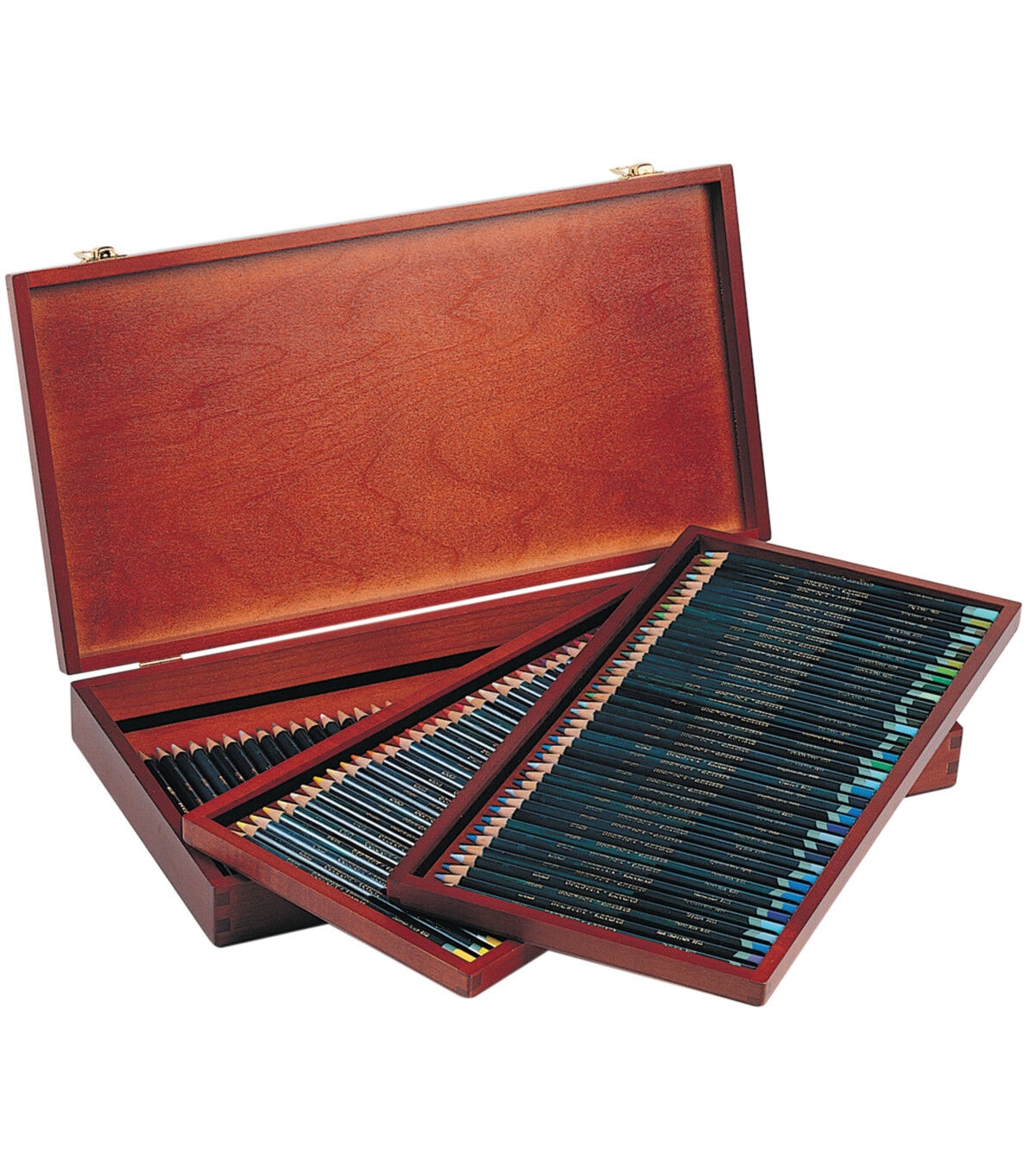 This range of round-barreled colored pencils includes primary and secondary colors along with their relative hues. The thick color leads have excellent strength and can produce any variation in shading or intensity of color. This all-inclusive set makes a great gift for colorists, and comes in an attractive wood box for easy storage and portability.