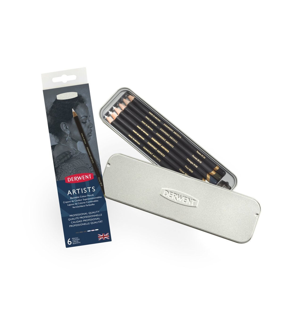 This set features six warm and cool tones in Derwent's finest quality Artists pencils - ideal for sketching, portraiture and more detailed illustrations. The conveniently reusable tin includes a pencil sharpener and six colored pencils in variations of black and white: three cool tones (Arctic, Oyster and Pure) and three warm tones (Midnight, Forest and Raven). Designed for blending and creating complementary tones and highlights, these six colors add complexity to your palette!
