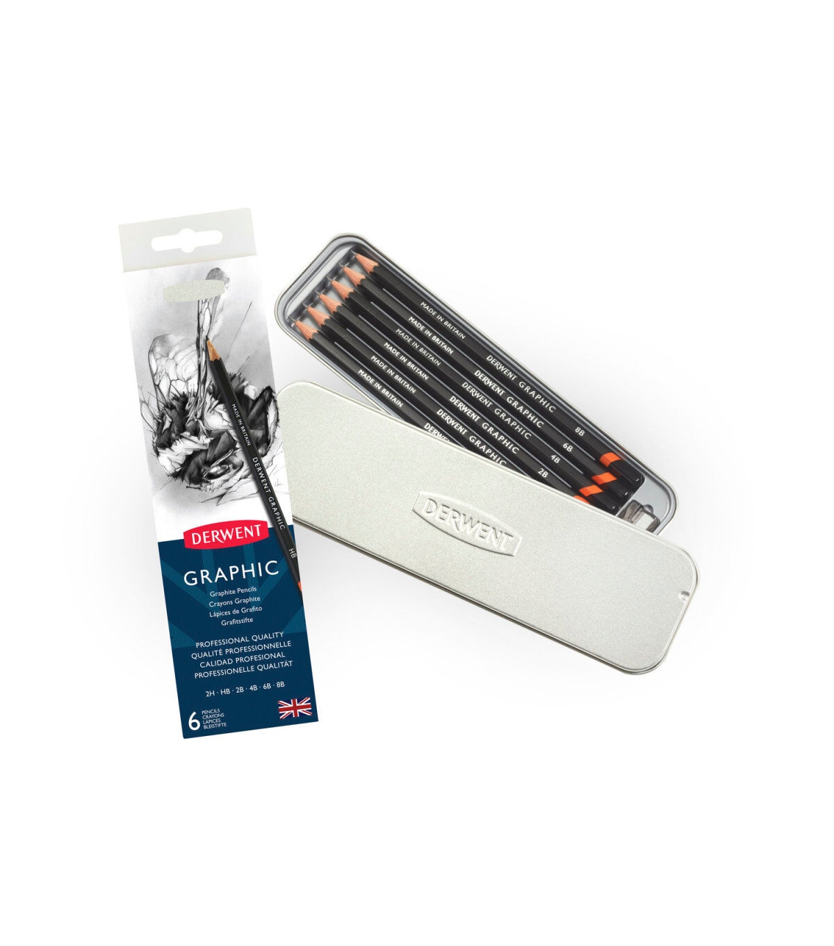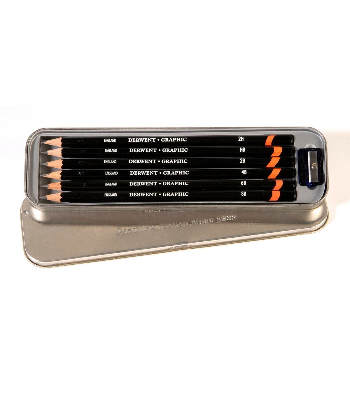 This graphite pencil set contains a large variety of grades, offering an extensive value range for artists, designers, draftspersons and creatives of all types. These 6 graphite pencils (2H, HB, 2B, 4B, 6B, 8B) sharpen to a good long-lasting point.