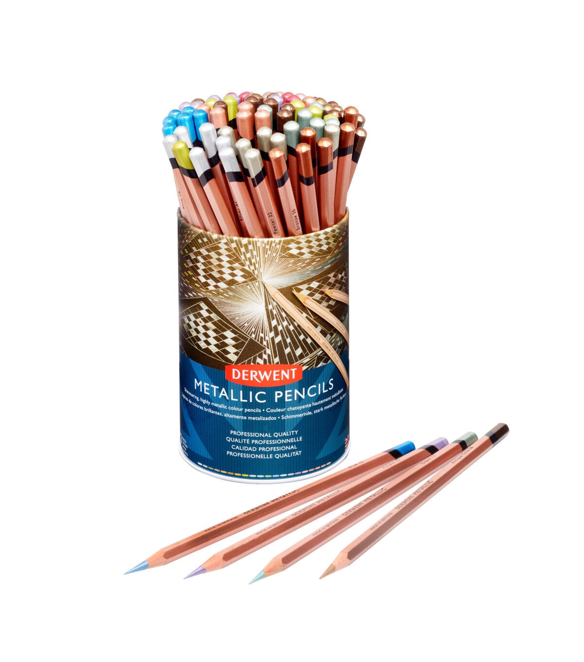 Derwent Metallic pencils are shimmering, highly metallic pencils that blend beautifully together to create vivid and striking metallic effects, particularly on dark paper.