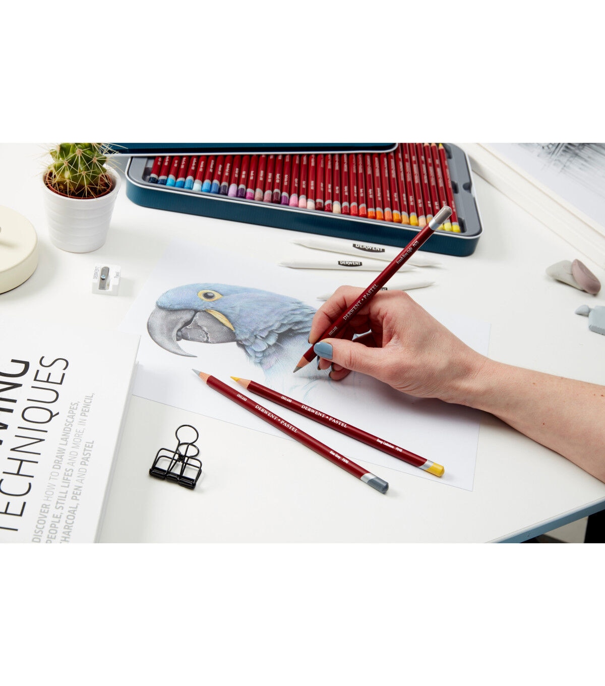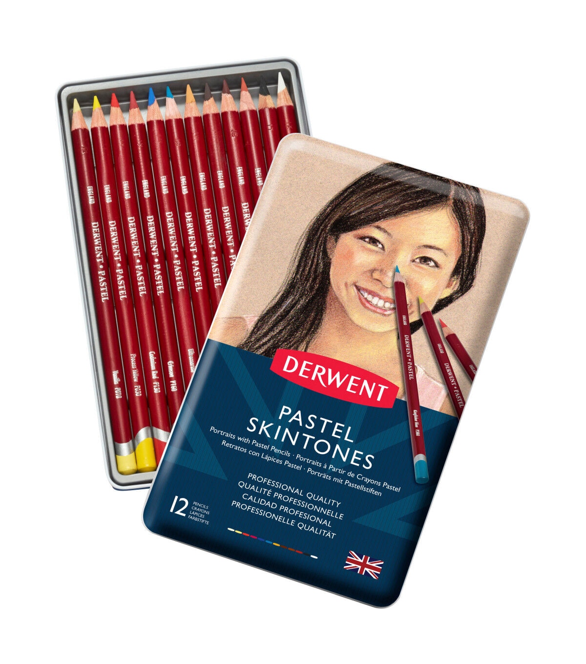 These elegant, contemporary pastel pencils feature a wide range of skin tones for portraiture, and allow for precision and control with the same smooth properties of pastel you know and love. The wide color strips are powdery and soft so mixing and blending is effortless. Set colors include Vanilla, Process Yellow, Cadmium Red, Crimson, Ultramarine, Kingfisher Blue, Yellow Ochre, Chocolate, Burnt Carmine, Terracotta, Carbon Black, Carbon White. Includes Assorted colors, 12 pencils, Lightfast, Suitable for all types of pastel work, Includes tin storage case