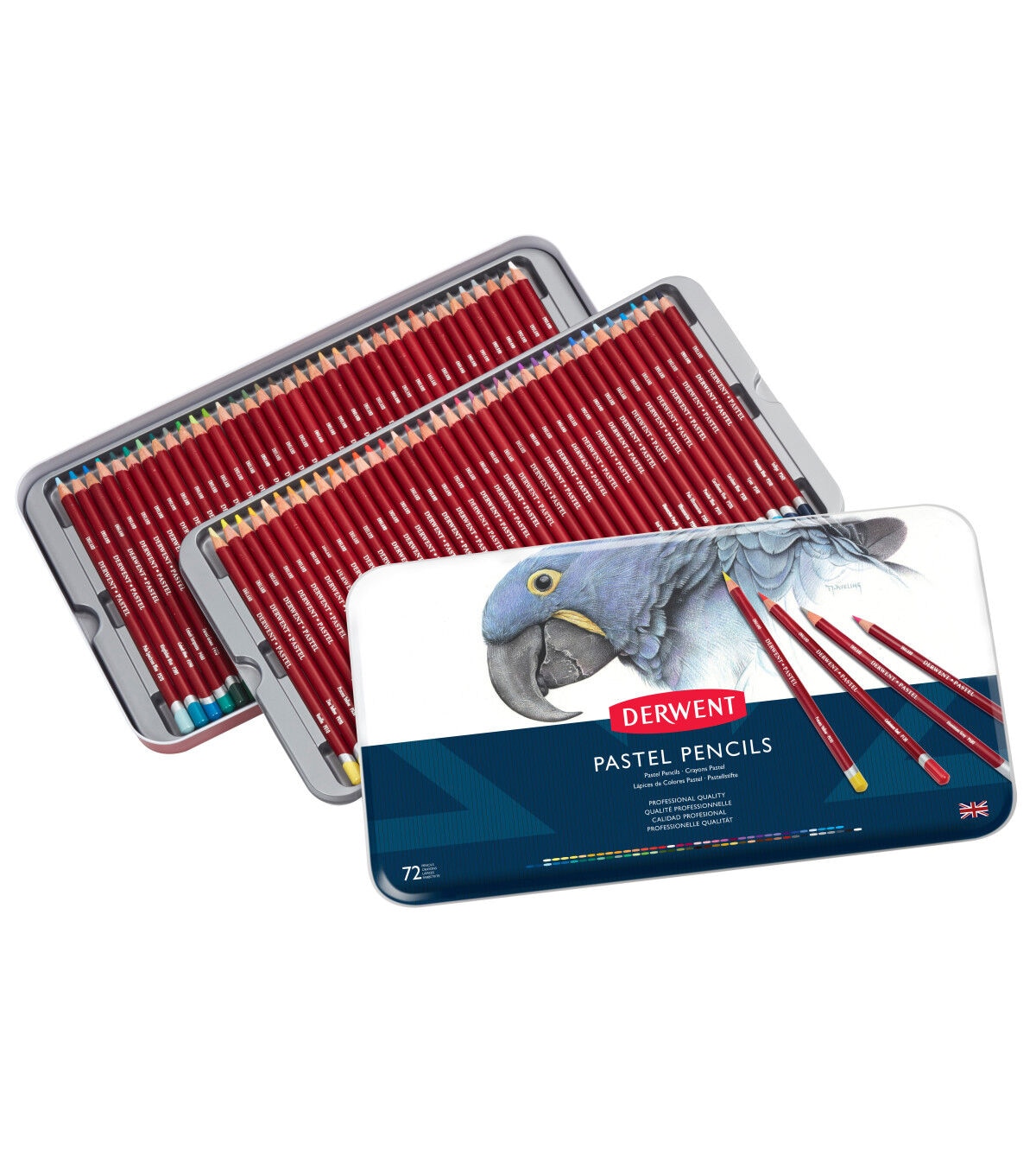 These elegant, contemporary pastel pencils allow for precision and control with the same smooth properties of pastel you know and love. The wide color strips are powdery and soft so mixing and blending is effortless. Set colors include Vanilla, Zinc Yellow, Process Yellow, Deep Cadmium, Saffron, Dandelion, Naples Yellow, Marigold, Burnt Orange, Spectrum Orange, Tangerine, Tomato, Cadmium Red, Raspberry, Flesh, Crimson, Maroon, Pale Pink, Coral, Magenta, Dark Fuchsia, Burgundy, Soft Violet, Violet Oxide, Lavender, Violet, Red Violet, Dioxazine Purple, Ultramarine, Pale Ultramarine, Powder Blue, Cornflower Blue, Cerulean Blue, Cyan, Prussian Blue, Indigo, Pale Spec Blue, Kingfisher Blue, Cobalt Blue, Cobalt Turquoise, Forest Green, Shamrock, Pea Green, Mid Green, Green Oxide, Emerald Green, Fresh Green, May Green, Pale Olive, Ionian Green, Olive Green, Dark Olive, Sepia, Burnt Umber, Brown Earth, Raw Umber, Tan, Yellow Ochre, Chocolate, Burnt Ochre, Burnt Carmine, Dark Sanguine, Venetian Red, Terracotta, French Grey Dark, Seal, French Grey Lt, Aluminum Grey, Blue Grey, Graphite Grey, Carbon Black, Titanium White.