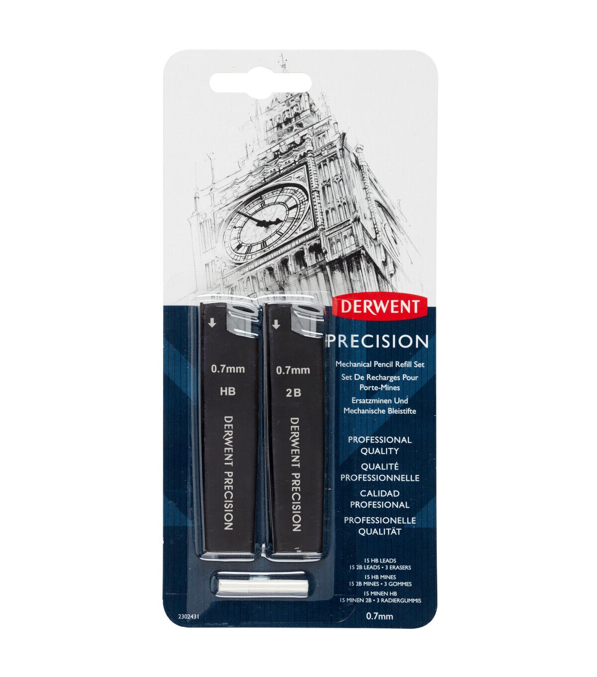 Continue to use your Derwent Precision mechanical pencil for consistent, controlled linework! The .7mm refill set includes one HB .7mm refill box with 15 HB leads inside, one 2B .7mm refill box with 15 2B leads inside.