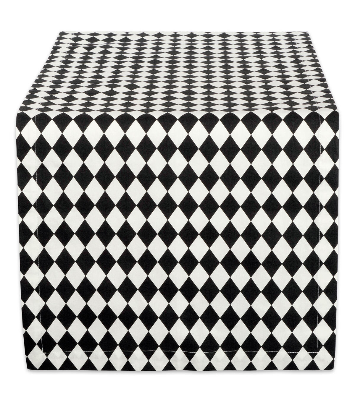 Design Imports Harlequin Print Table Runner 14x72- Design Imports Halloween Black & Cream Harlequin Printed Table Runner is 100% cotton. This table runner measures 14x172" with 1" hems and mitered corners. Halloween Black & Cream Harlequin table runner makes it easy to dress up your table setting for Halloween! This runner adds the perfect touch to your table for Halloween dinner, Halloween parties or scary movie nights! In addition to dining tables this runner is great for entry way tables, low book shelves or other surfaces of your home. Machine washable for easy clean up!