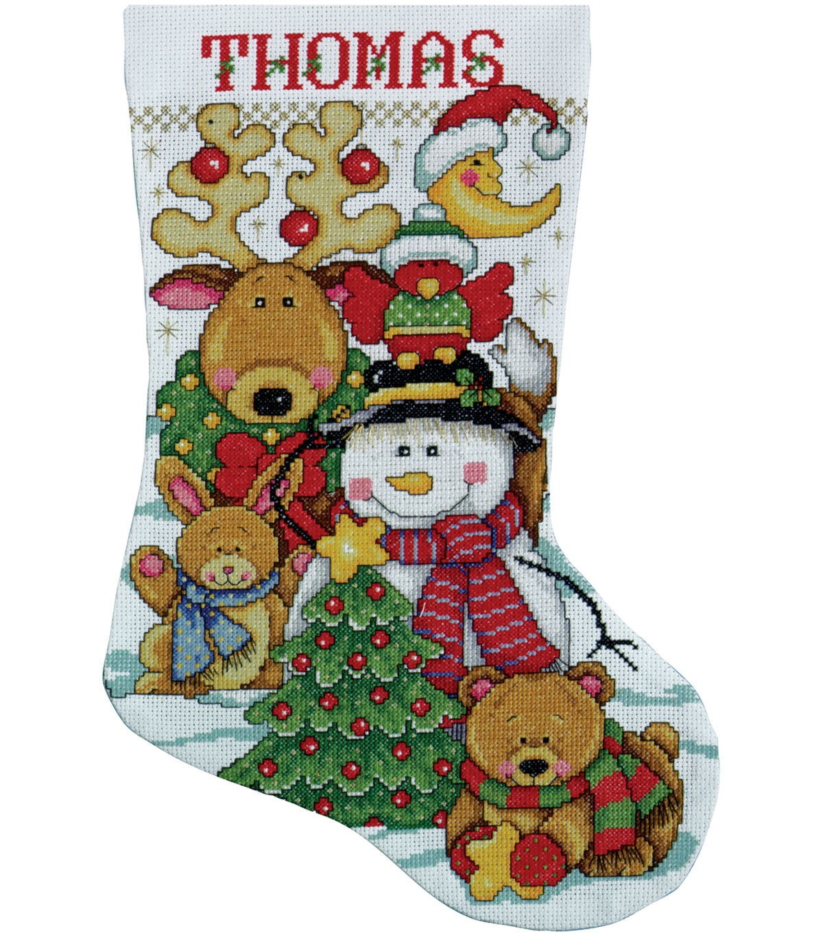 TOBIN-Counted Cross Stitch Kit: Stocking. Create an adorable stocking that everyone will love! It will be a great decorative item to be used year after year. This package contains a 14 count aida cloth, beads, cotton floss, backing fabric, needle, patterns and instructions. Design: Making New Friends. Size: 17 inches long. Made in USA.