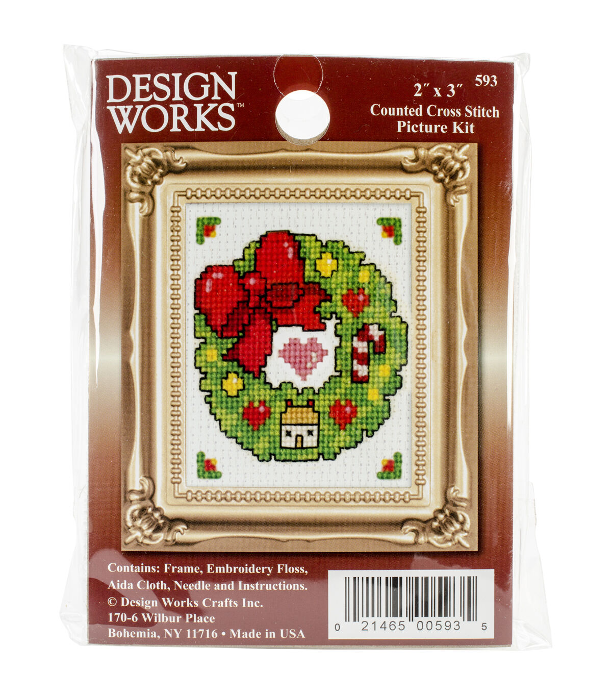 Decorate your home for holiday season with a lovely festive cross stitched ornament, using the Design Works Wreath Ornament Counted Cross Stitch Picture Kit 3'' x 2''. The counted cross stitch kit includes embroidery floss, one 3 x 2-inch plastic frame, needle, Aida fabric and instructions that are easy to follow. The design in this kit features the words 'Keep Christmas In Your Heart' and simple symbolic designs. Simply follow the instructions to complete it and mount the 3 x 2-inch finished design in the mini frame.
