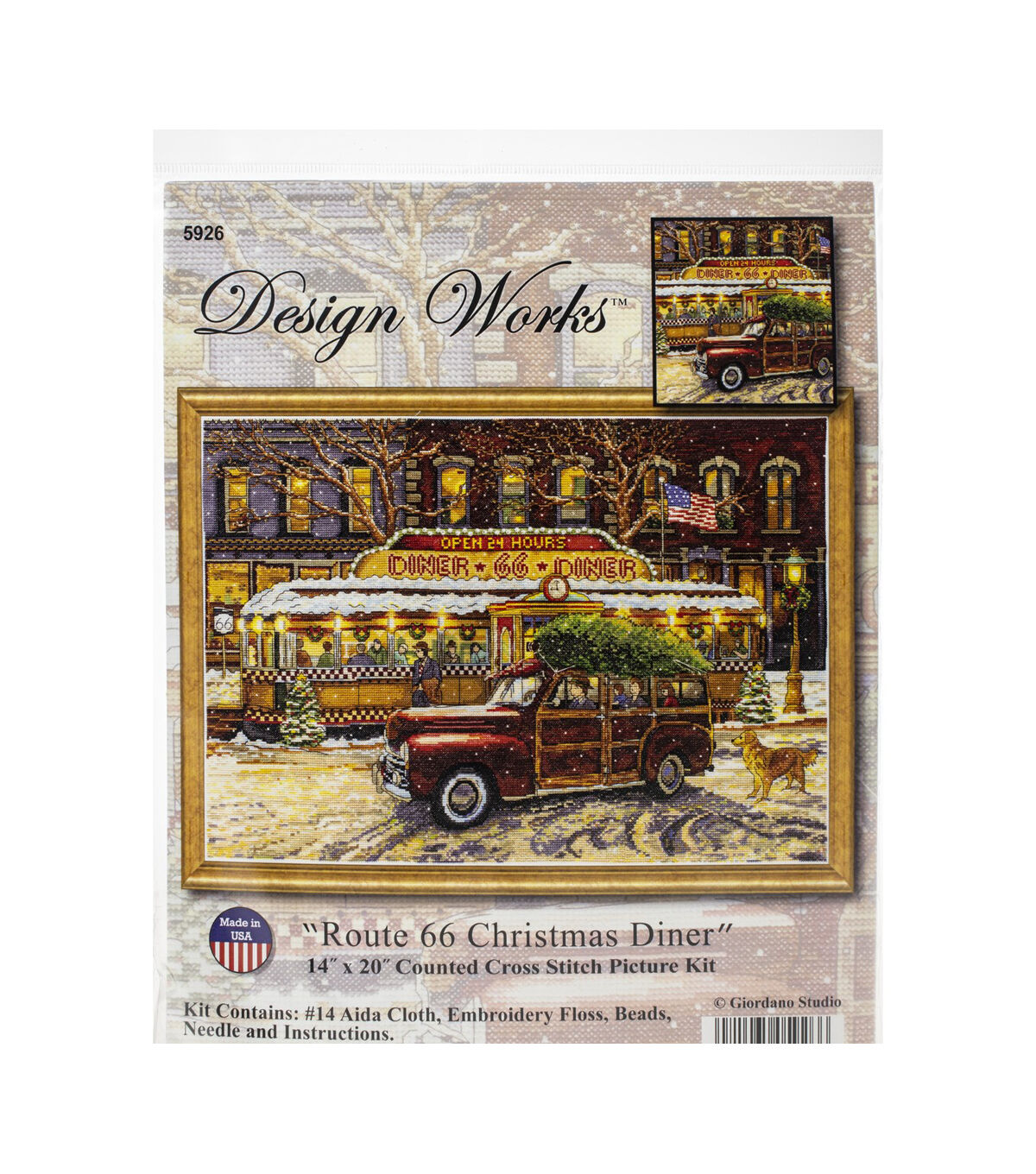 Beautiful designs and top-quality materials make Design Works one of the top cross stitch kit makers worldwide. This package contains 14-count Aida, 100% cotton embroidery floss, beads, needle and fully-illustrated chart and instructions. Finished Size: 14x10 inches. Design: Route 66 Christmas. Made in USA.
