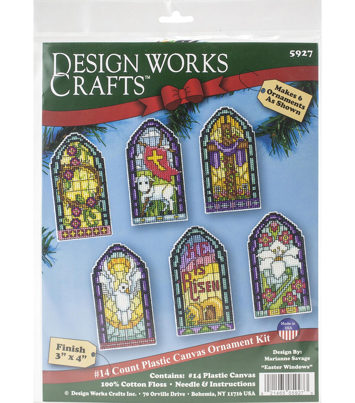Beautiful designs and top-quality materials make Design Works one of the top cross stitch kit makers worldwide. This package contains 14-count plastic canvas, cotton floss, needle and instructions. Finished Size: Six 2x4 inch ornaments. Design: Stained Glass. Made in USA.