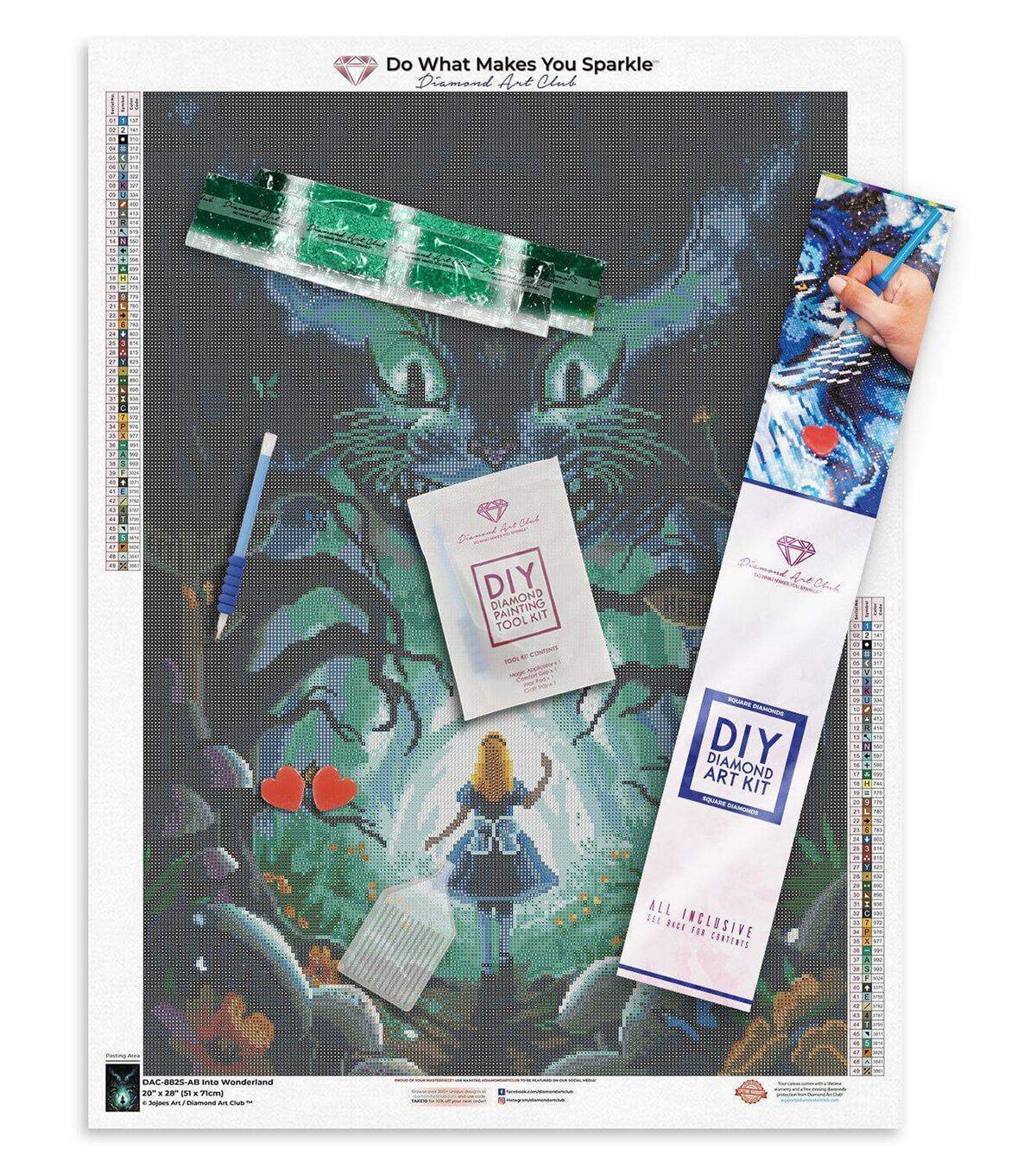 Originally created as a commissioned artwork specifically for a friend's birthday, you can now bring this fantastically spooky rendering of wonderland into your home. Diamond Art Club® manufactures the highest quality diamond art painting kits in the world today. Like a combination of cross-stitch and paint-by-numbers, diamond art painting is the new creative hobby that’s taking the crafting world by storm. No experience is necessary. You simply apply colorful resin rhinestones to richly-pigmented canvas paintings to create visually dazzling, mosaic diamond artworks that sparkle, shimmer and shine. Each Diamond Art Club® kit includes everything you need to get started: our patented premium-quality canvas, extra-faceted reflective resin rhinestone diamonds, an applicator tool with soft grip, a crafting tray, tweezers, paddy wax, and simple how-to instructions. Each kit comes with a lifetime warranty and accidental insurance. We hope you enjoy Diamond Art Club® and our labor of love.