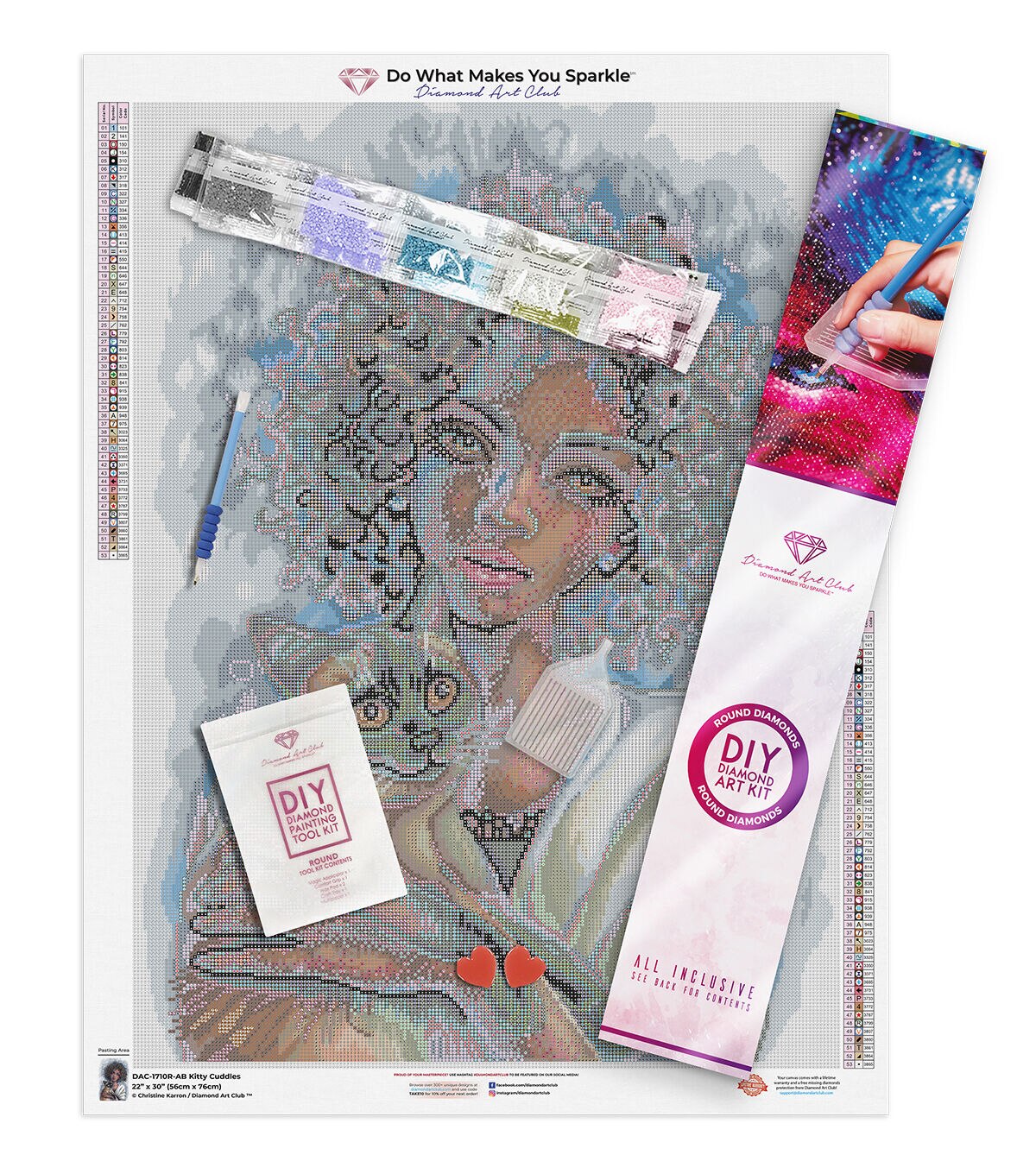 People have said that pets and their caretakers have a tendency to look alike. Whether they did when they first met, or whether they grew into each other is another story entirely. Wrap yourself in love with this bonded pair of glowing beauties as they strike a harmonious pose filled with tenderness, cuddles, and calm. Diamond Art Club® manufactures the highest quality diamond art painting kits in the world today. Like a combination of cross-stitch and paint-by-numbers, diamond art painting is the new creative hobby that’s taking the crafting world by storm. No experience is necessary. You simply apply colorful resin rhinestones to richly-pigmented canvas paintings to create visually dazzling, mosaic diamond artworks that sparkle, shimmer and shine. Each Diamond Art Club® kit includes everything you need to get started: our patented premium-quality canvas, extra-faceted reflective resin rhinestone diamonds, an applicator tool with soft grip, a crafting tray, paddy wax, and simple how-to instructions. Each kit comes with a lifetime warranty and accidental insurance. We hope you enjoy Diamond Art Club® and our labor of love.