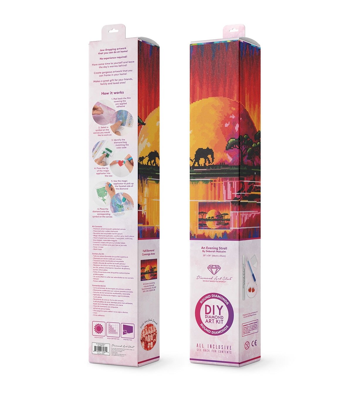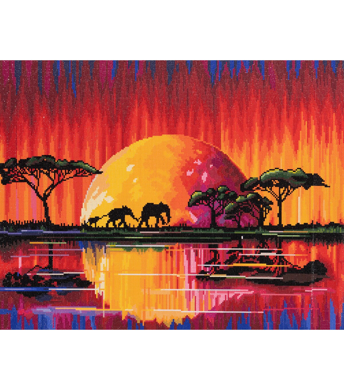Make your way along the river, edging ever nearer to home. Cross the vast range of hues, from golden yellows to burning reds, as the setting sun burns its colors into the African landscape. Diamond Art Club manufacturers the highest quality diamond art painting kits in the world today. Like a combination of cross-stitch and paint-by-numbers, diamond art painting is the new creative hobby that’s taking the crafting world by storm. No experience is necessary. You simply apply colorful resin diamonds to richly-pigmented canvas paintings to create visually dazzling, mosaic diamond artworks that sparkle, shimmer and shine. Each Diamond Art Club kit includes everything you need to get started: our patented premium-quality canvas, extra-faceted reflective resin diamonds, an applicator tool with comfort grip and multi-placers, a crafting tray with stopper, a cover minder, a roll of washi tape, 2 wax pads with heart container, a tool kit pouch, simple how-to instructions, resealable baggies, and pre-cut sticker labels. Each kit comes with a lifetime warranty and accidental insurance. We hope you enjoy Diamond Art Club and our labor of love.