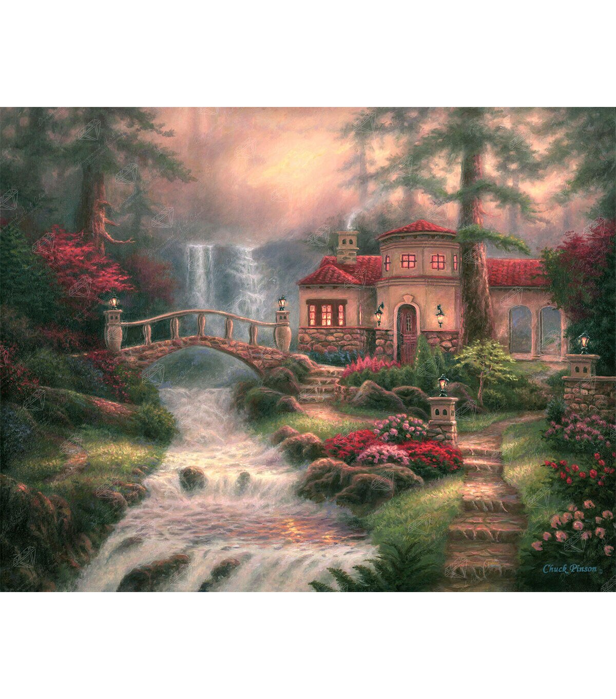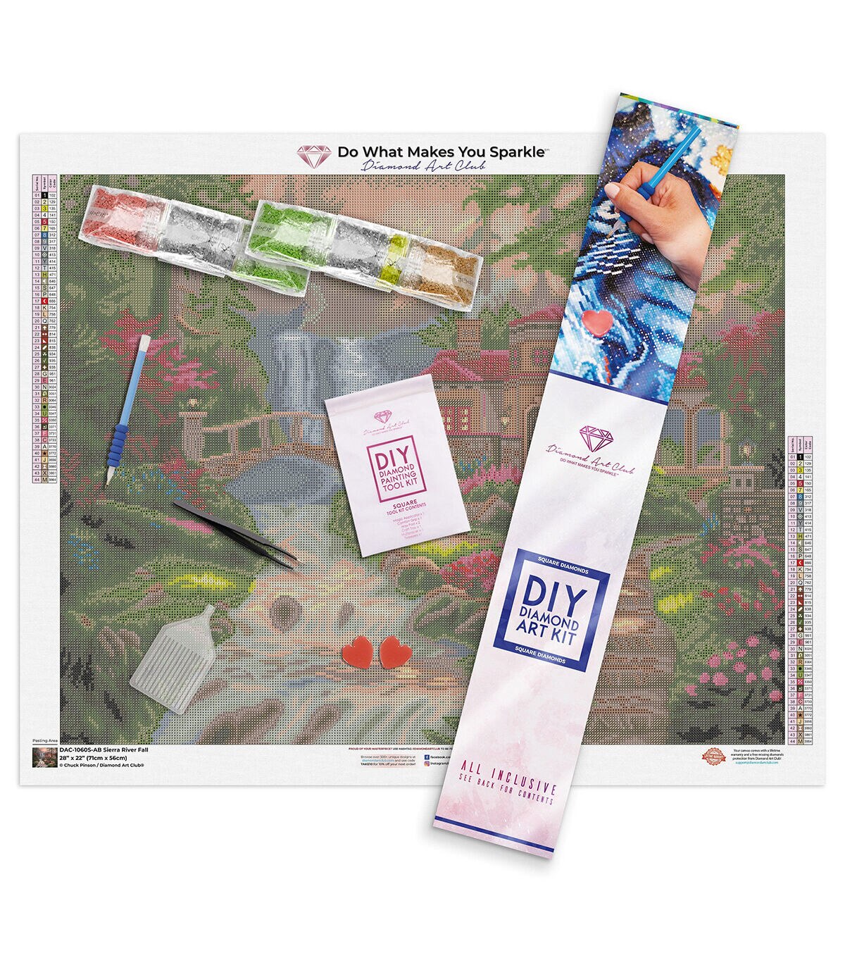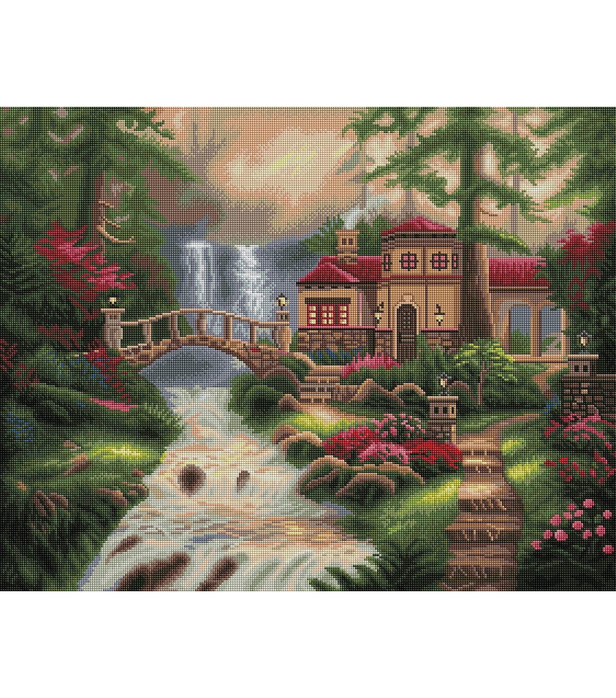 As you climb the last few steps up the path to the foot of a glowing, romantic villa, turn your senses inward and absorb the presence of a shimmering, cascading waterfall. Its soft, constant rumble clears your mind, while the refreshing cool sprays excite your skin. Relax into the magnificent, rosy sunset which colors the entire landscape with pinks and golds that reflects off the rapids of the river below. Diamond Art Club® manufactures the highest quality diamond art painting kits in the world today. Like a combination of cross-stitch and paint-by-numbers, diamond art painting is the new creative hobby that’s taking the crafting world by storm. No experience is necessary. You simply apply colorful resin rhinestones to richly-pigmented canvas paintings to create visually dazzling, mosaic diamond artworks that sparkle, shimmer and shine. Each Diamond Art Club® kit includes everything you need to get started: our patented premium-quality canvas, extra-faceted reflective resin rhinestone diamonds, an applicator tool with soft grip, a crafting tray, tweezers, paddy wax, and simple how-to instructions. Each kit comes with a lifetime warranty and accidental insurance. We hope you enjoy Diamond Art Club® and our labor of love.