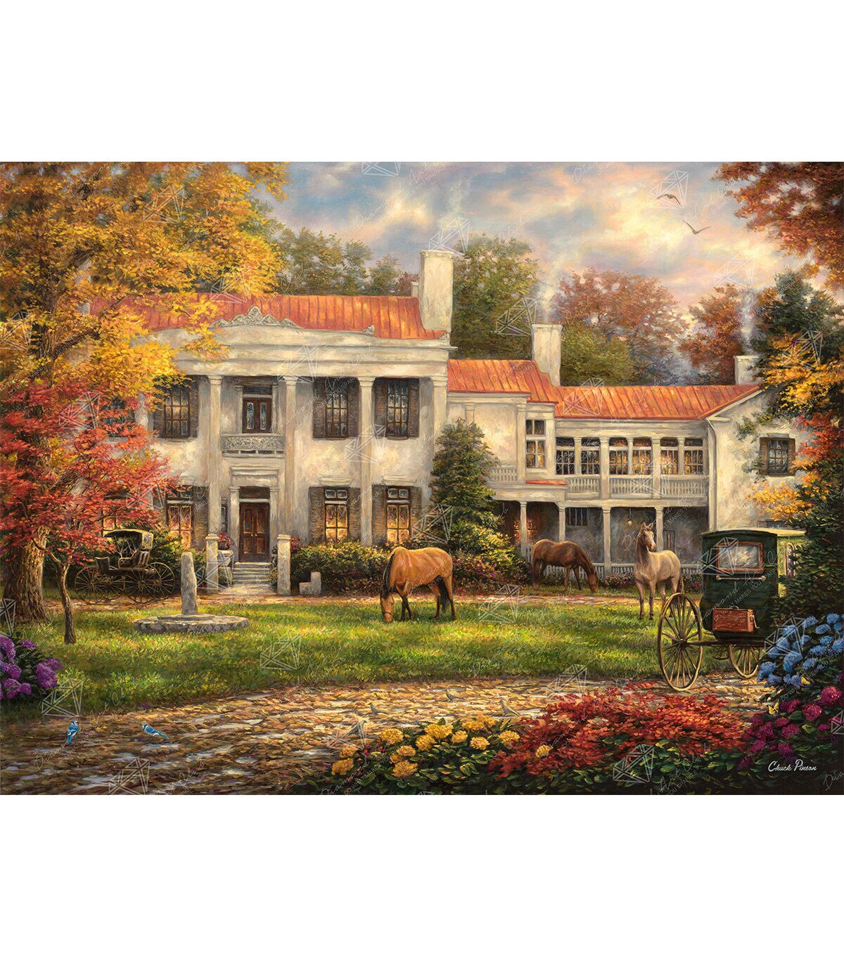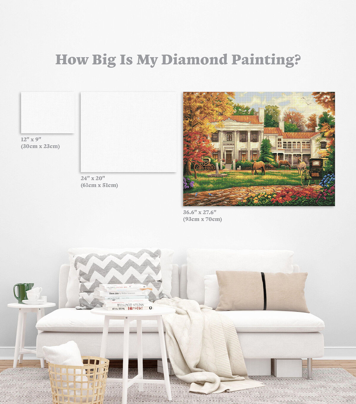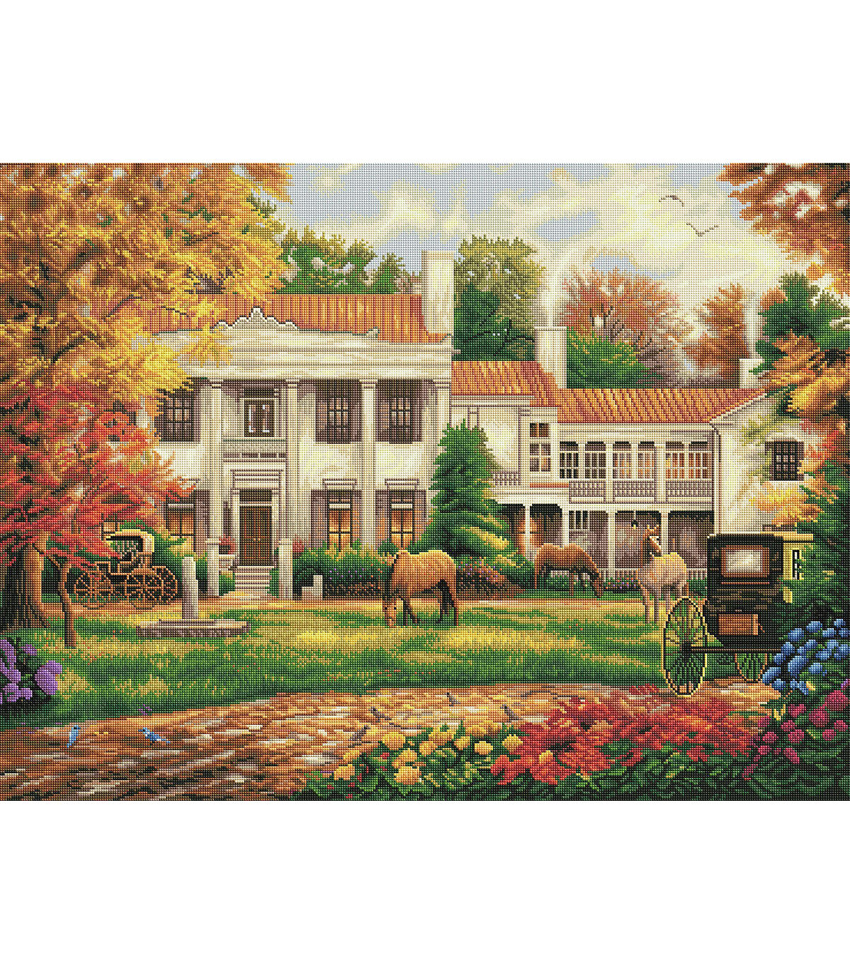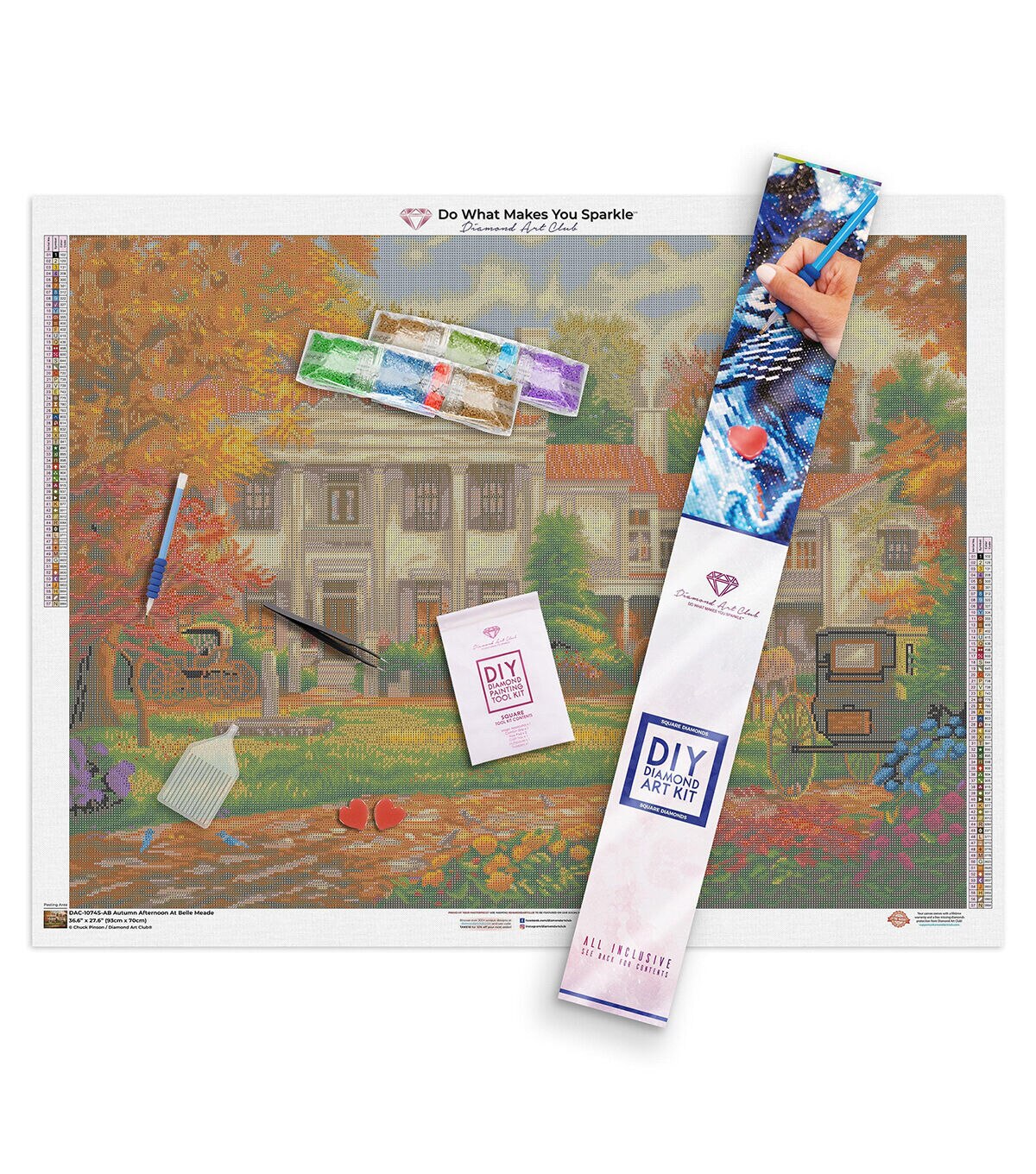 Greet old friends with a gentle nod as you mount a carriage and take it out for a slow ride. Journey down cobblestone paths that lead to tranquil fields full of glowing maples and golden oaks. Feel the cool autumn air as it mixes with streams of sunlight and settle back in front of a truly elegant and welcoming manor, full of grace and southern charm. Diamond Art Club® manufactures the highest quality diamond art painting kits in the world today. Like a combination of cross-stitch and paint-by-numbers, diamond art painting is the new creative hobby that’s taking the crafting world by storm. No experience is necessary. You simply apply colorful resin rhinestones to richly-pigmented canvas paintings to create visually dazzling, mosaic diamond artworks that sparkle, shimmer and shine. Each Diamond Art Club® kit includes everything you need to get started: our patented premium-quality canvas, extra-faceted reflective resin rhinestone diamonds, an applicator tool with soft grip, a crafting tray, tweezers, paddy wax, and simple how-to instructions. Each kit comes with a lifetime warranty and accidental insurance. We hope you enjoy Diamond Art Club® and our labor of love.