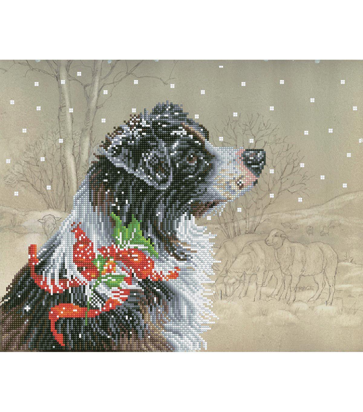 Quick, easy and fun to do! Just use the Diamond Dotz Stylus to pick up a dot and place it onto the matching square on the sticky print. This package contains one 23x19.2 inch piece of high quality colors printed fabric, Diamond Dotz, one stylus, one craft tray, one wax caddy and multi-lingual instructions. Design: Christmas Collie. Design Size: 19.9x16 inches. Imported.