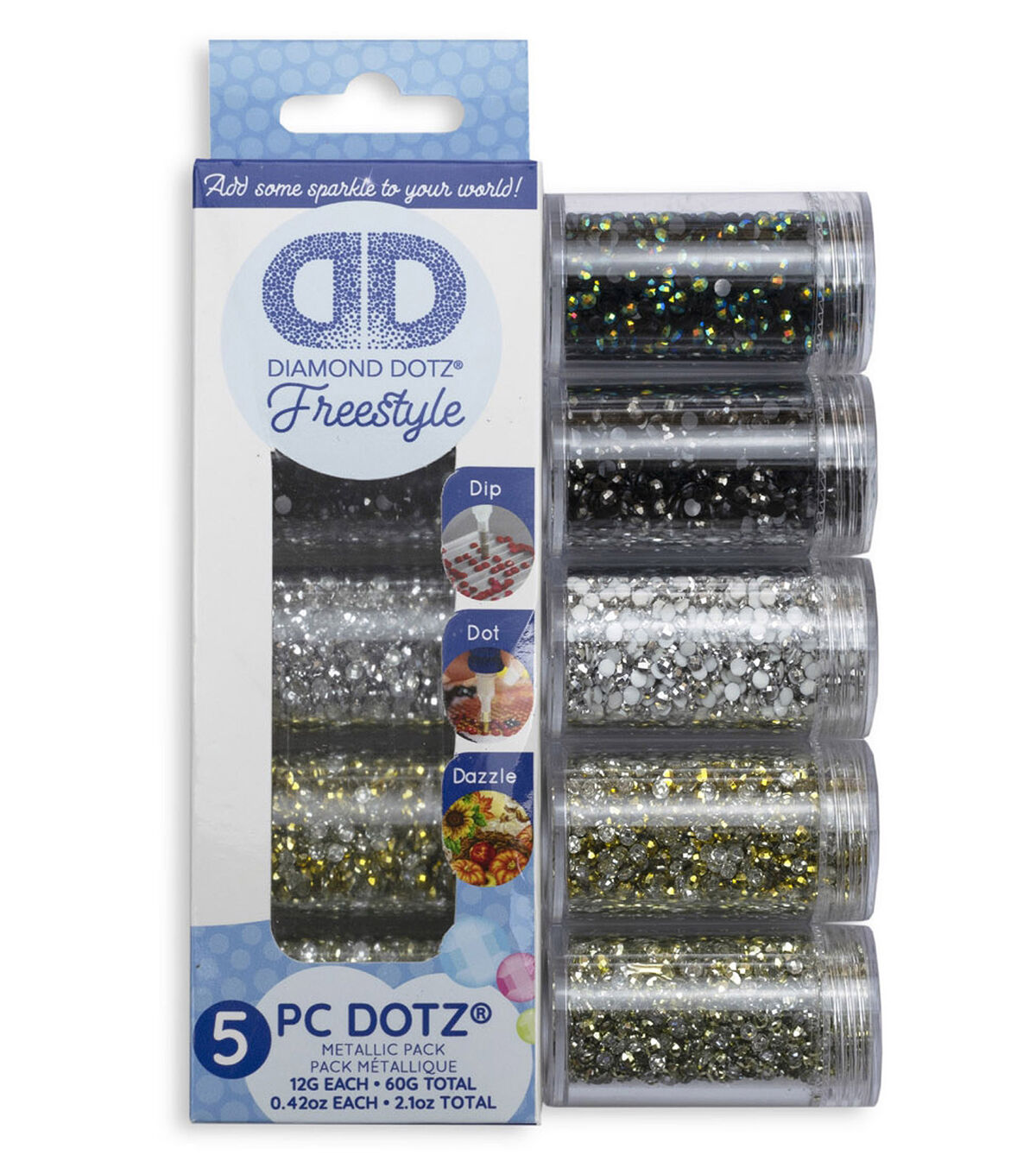 The perfect try me dotz® sampler 5 pack in your favorite metallic colors.