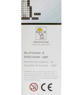 Quick, easy and fun to do! Just use the Diamond Dotz Stylus to pick up a dot and place it onto the matching square on the sticky print. This package contains one 11.2x13.2 inch piece of high quality colors printed fabric, Diamond Dotz, one stylus, one craft tray, one wax caddy and multi-lingual instructions. Design: Baby Brollie. Design Size: 8x10 inches. Imported.