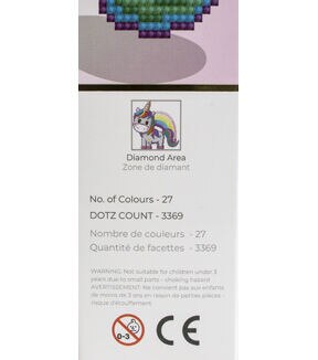 Quick, easy and fun to do! Just use the Diamond Dotz Stylus to pick up a dot and place it onto the matching square on the sticky print. This package contains one 12.2x12.2 inch piece of high quality colors printed fabric, Diamond Dotz, one stylus, one craft tray, one wax caddy and multi-lingual instructions. Design: Magic Rainbow. Design Size: 9x9 inches. Imported.