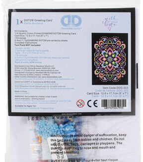 An innovative new product brought out by Diamond Dotz with eight different designs and unlimited fun. This package contains one 5x7 inch greeting card, one envelope, .4oz of pre-sorted Diamond Dotz and complete instructions. Design: Blackstar. WARNING: Choking Hazard- small parts. Not for children under 3 years. Imported.