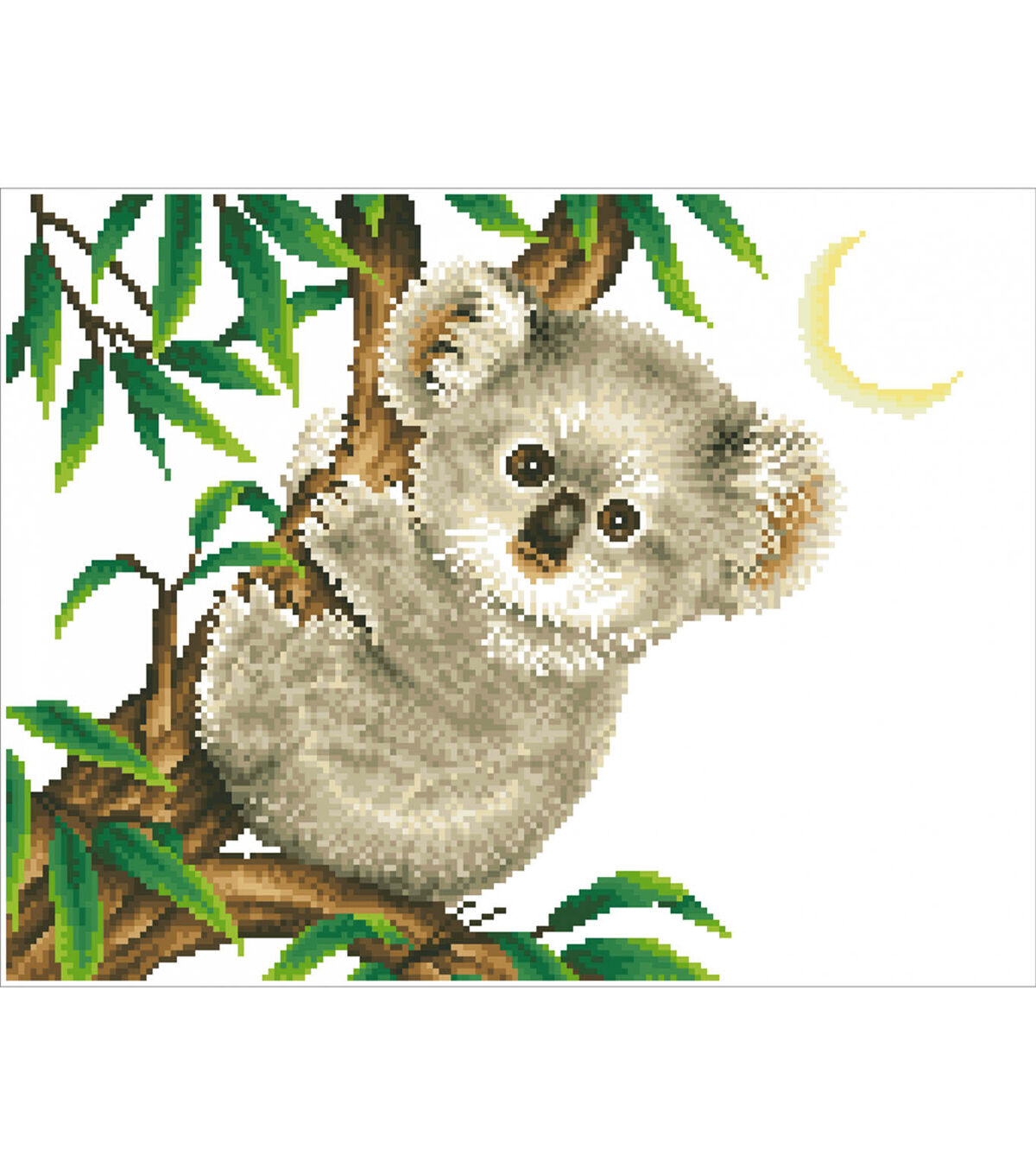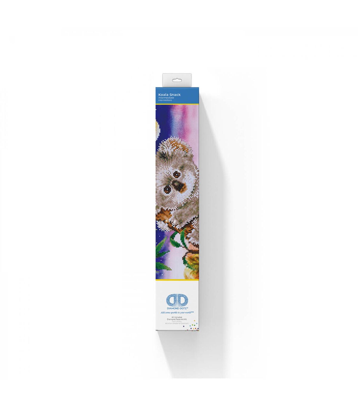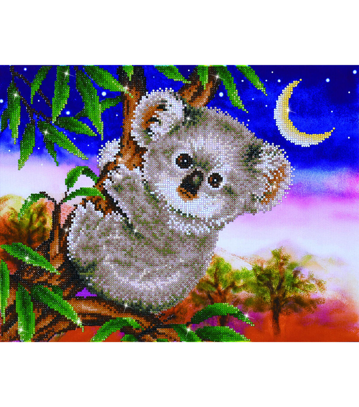 Quick, easy and fun to do! Just use the Diamond Dotz Stylus to pick up a dot and place it onto the matching square on the sticky print. This package contains one 22x17.7 inch piece of high quality color printed fabric, Diamond Dotz, one stylus, one craft tray, one wax caddy and multi-lingual instructions. Design: Koala Snack. Design Size: 19x14.5 inches. Imported.
