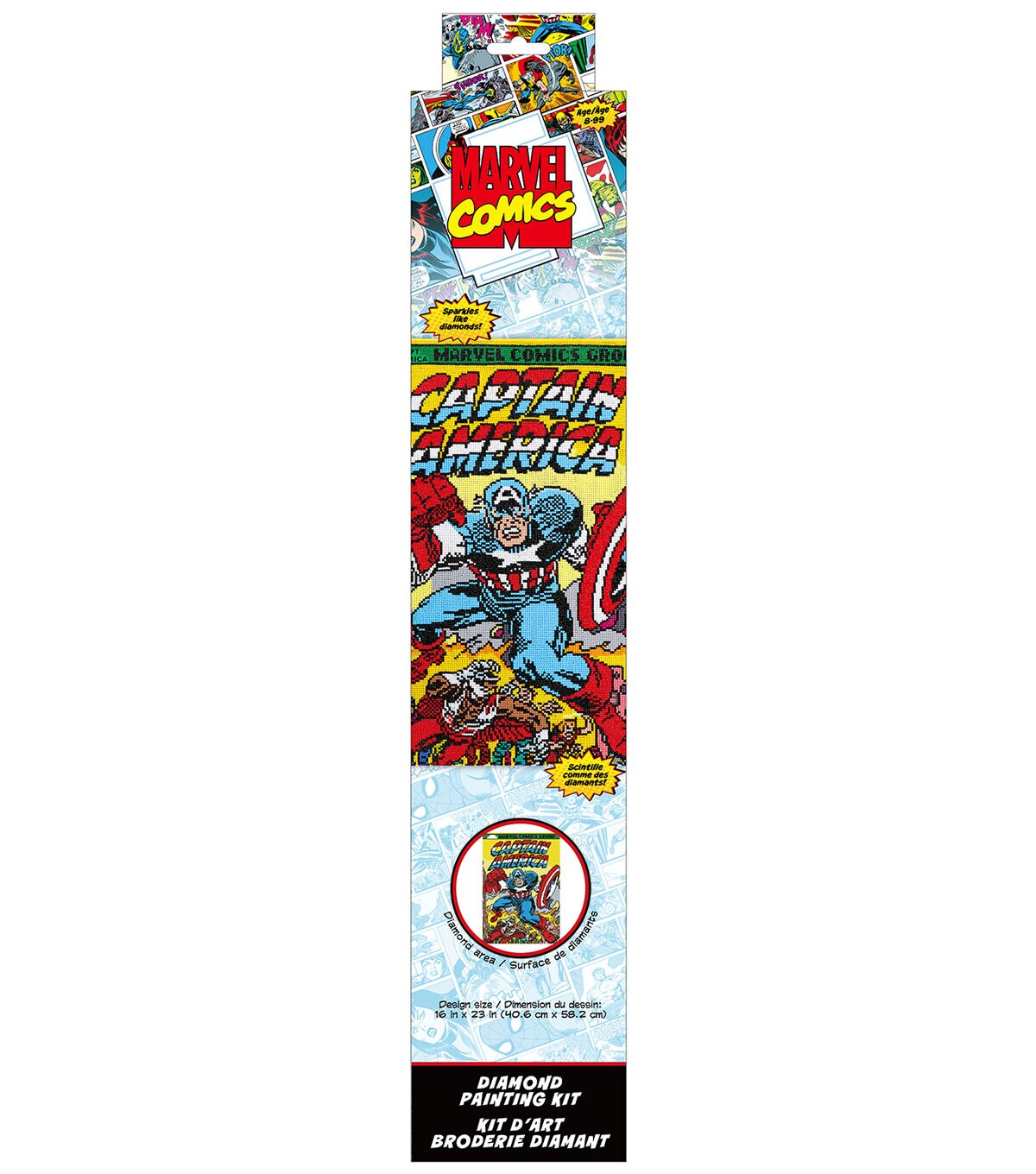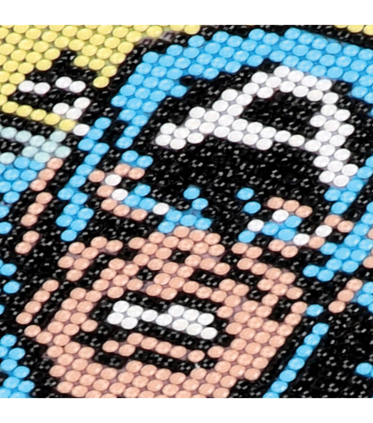 It’s like paint by numbers but with multi-facet dots. Quick, easy and fun to do! Marvel Captain Americs is always ready for action in this comic book cover inspired diamond painting kit. Challenge yourself with this advanced level kit. Dots cover the canvas from edge to edge.