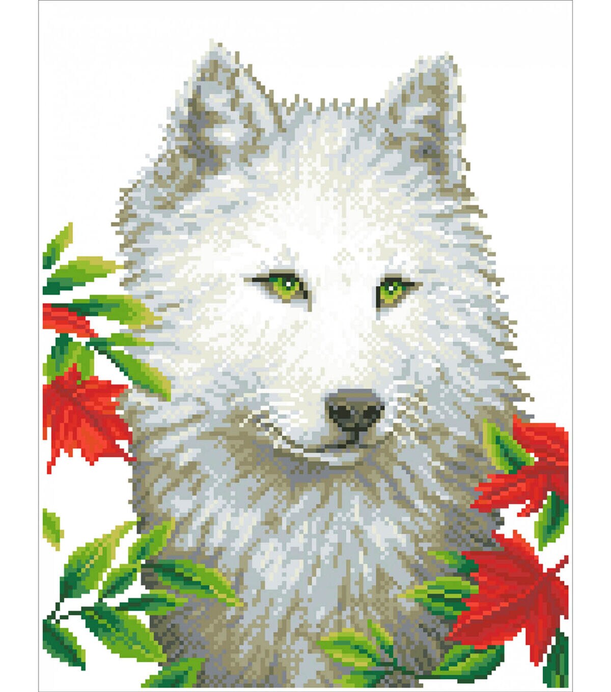 Diamond Dotz-Diamond Embroidery Facet Art Kit. Quick, easy and fun to do! Just use the Diamond Dotz Stylus to pick up a dot and place it onto the matching square on the sticky print. This package contains one 21-3/4x17-1/4 inch piece of high quality colors printed fabric, Diamond Dotz, one stylus, one craft tray, one wax caddy and multi-lingual instructions. Design: White Wolf. Design Size: 18x14 inches. Imported.