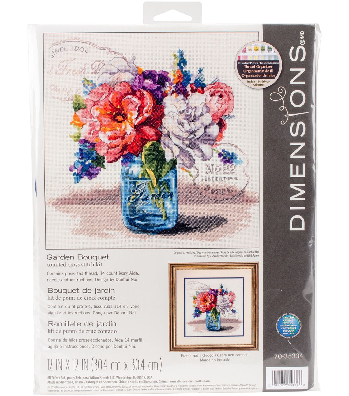 Dimensions-Counted Cross Stitch Kit. From elegant to whimsical, landscapes to still-life's, realistic to fantasy, no matter your style Dimensions has a fabulous needle-craft kit for you. This package contains 14-count ivory Aida, presorted thread, one needle and easy to follow instructions. Finished size: 12x12 inches. Design: Garden Bouquet. Designer: Danhui Nai. Imported.